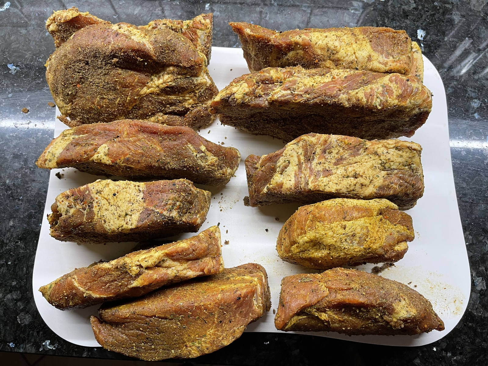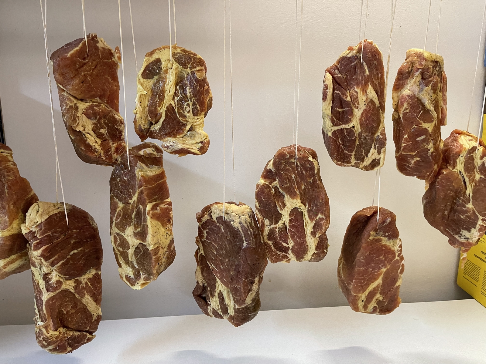 Jetzt gönne ich dem Fleisch ein paar Tage Ruhezeit, zum Abtrocknen, zum Entspannen, zum Durchröten oder zum Vergleich-
