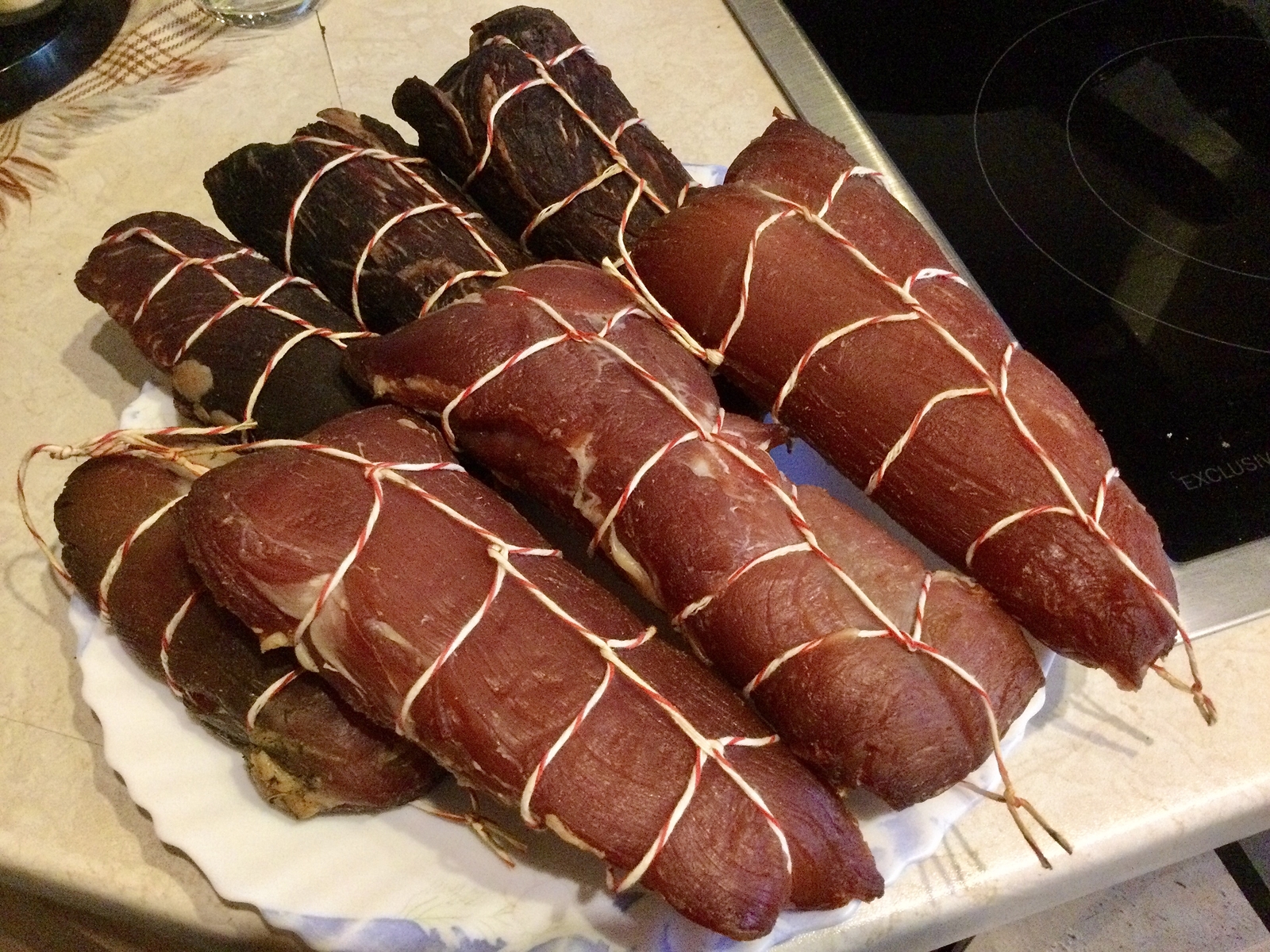 Bei mir sind gerade Hirschrücken, Schweinebauch und Wildschweinrücken im Pökelschlaf.