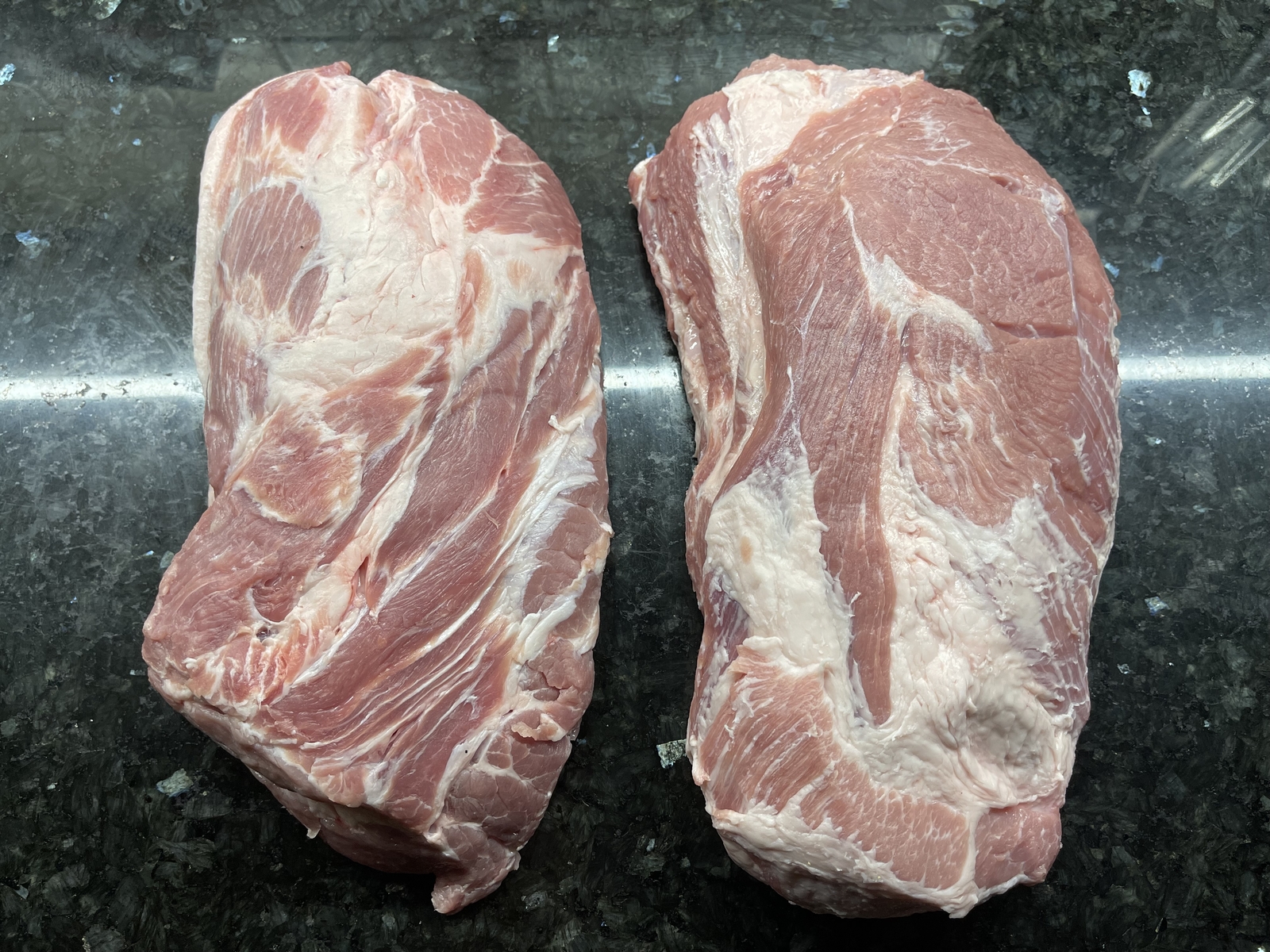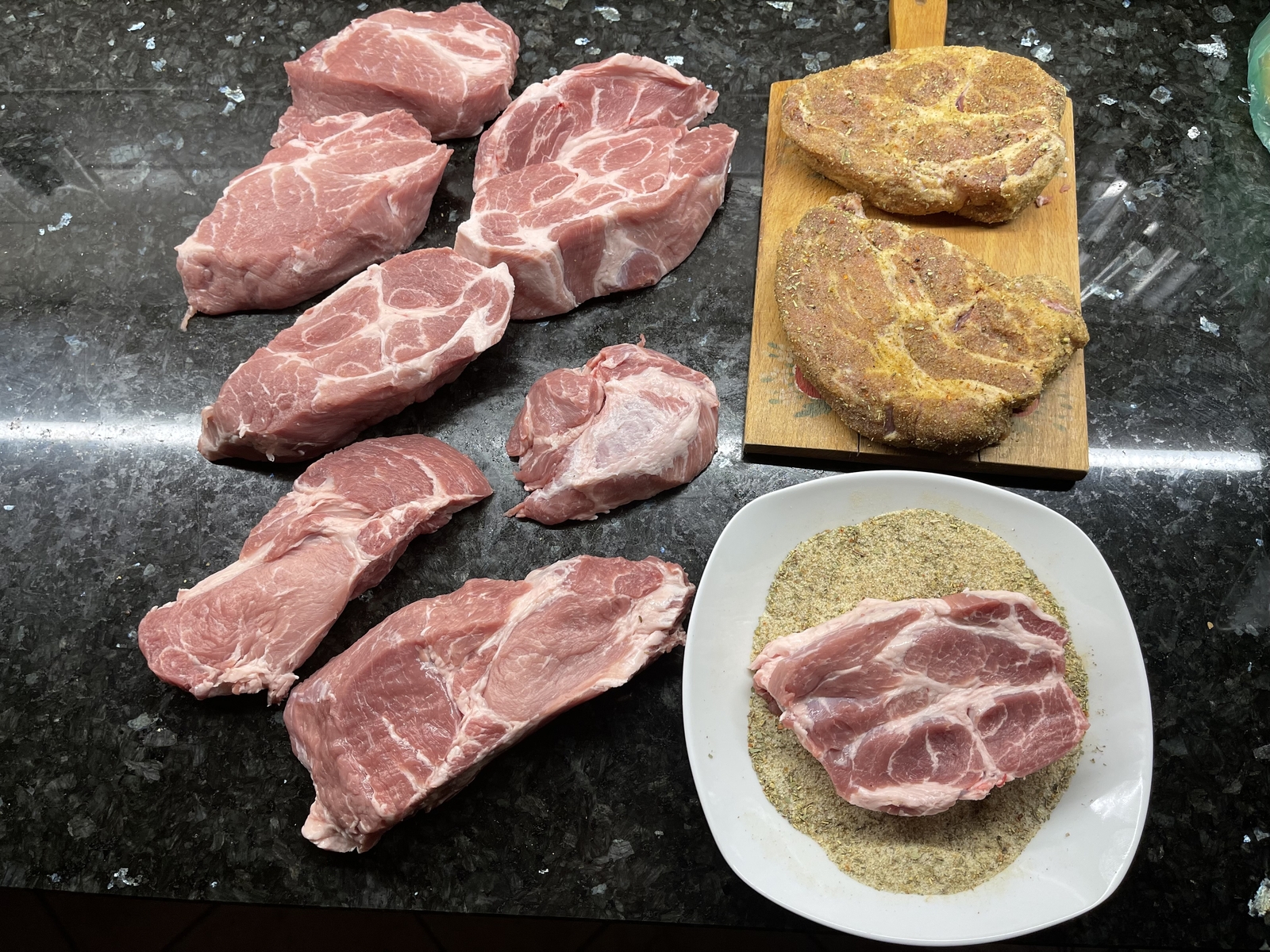 Vor 5 Tagen habe ich insgesamt 4,3 kg Schweinenacken in verbraucherfreundliche Stücke geschnitten, trocken mit Nitrit-