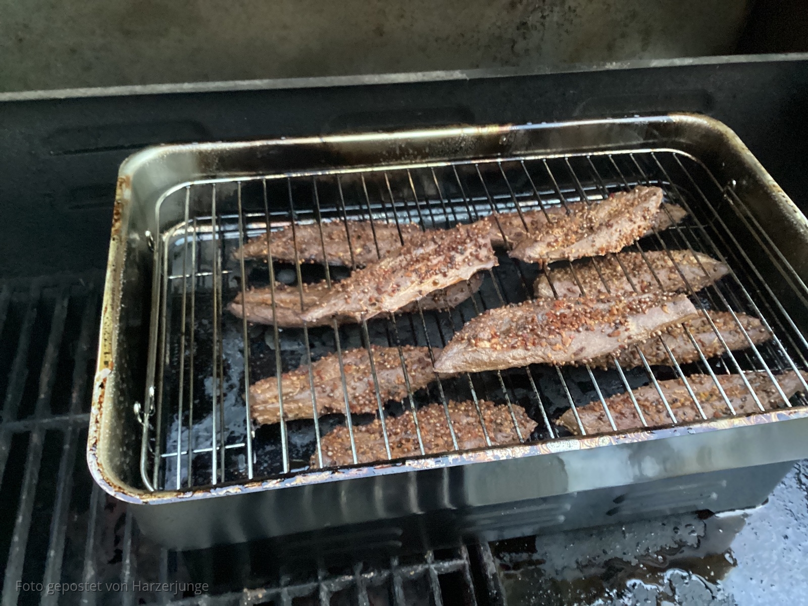 So heute morgen den Räucherofen mal entstaubt der erste Versuch :zwinkergross: