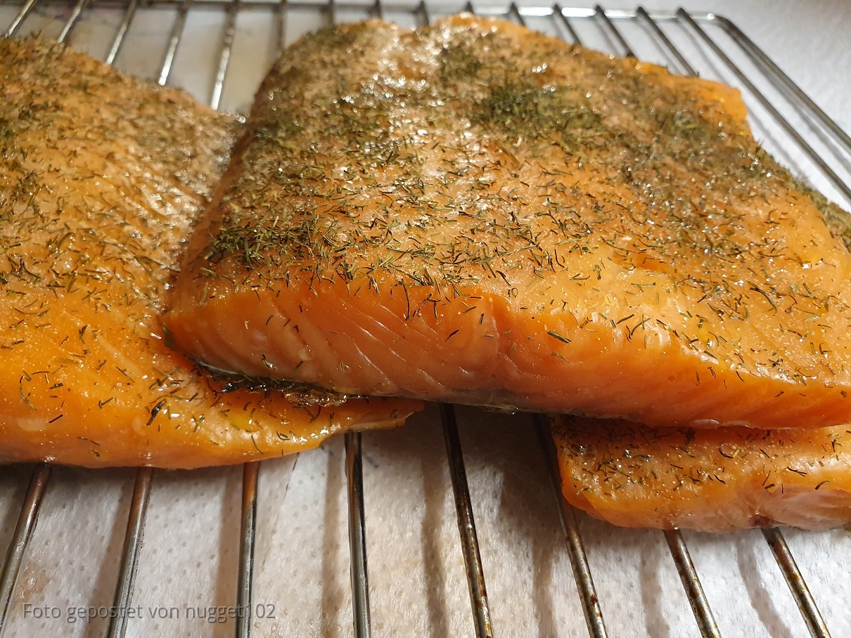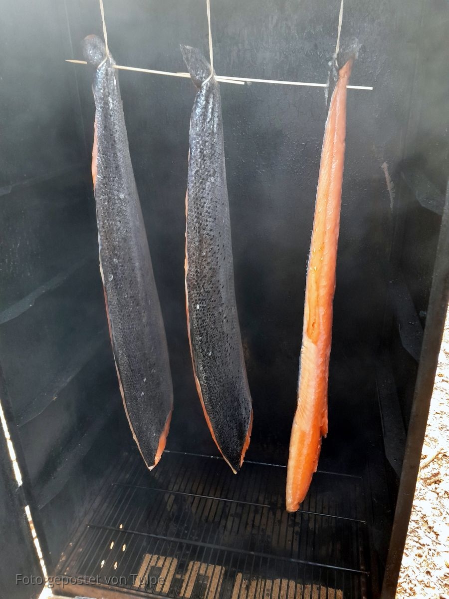 Zwei Nächte durfte unsere, geteilte Lachsseite im Rauch schlummern.