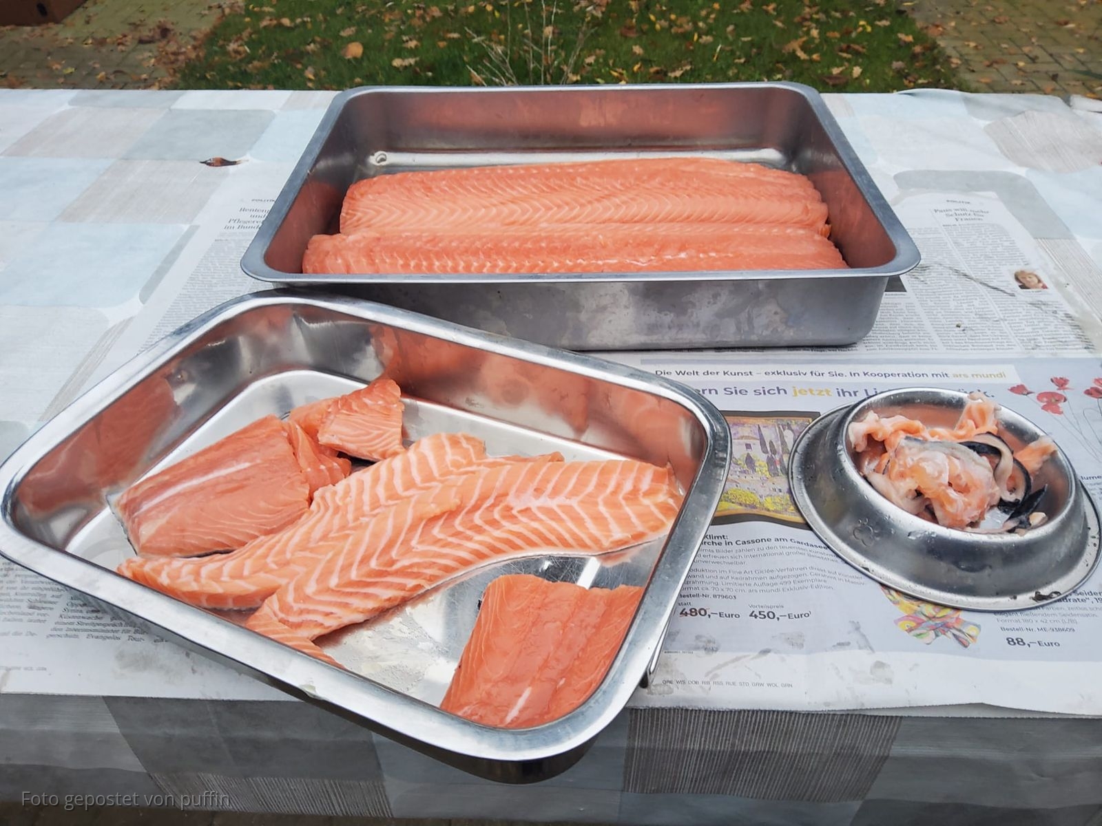 Momentan habe ich übrigens mal etwas Fisch für's Räuchern vorbereitet.