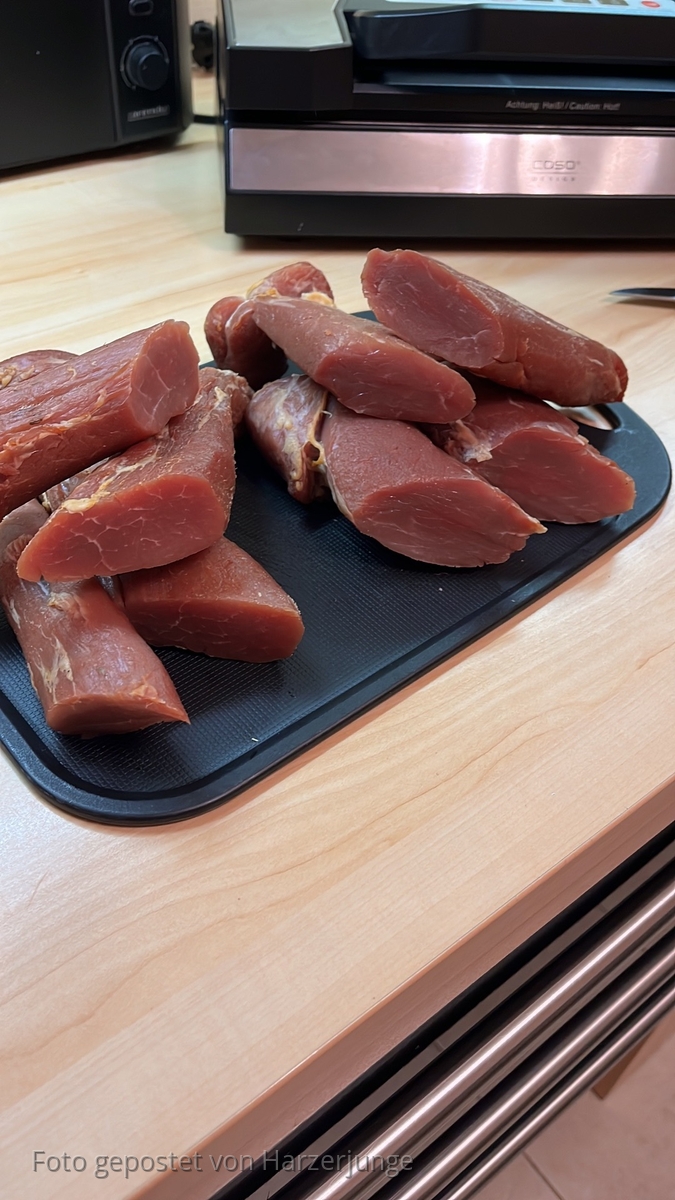 Heute habe ich die Schweinefilet aus dem Vakuum genommen Und zum Trocknen vorbereitet