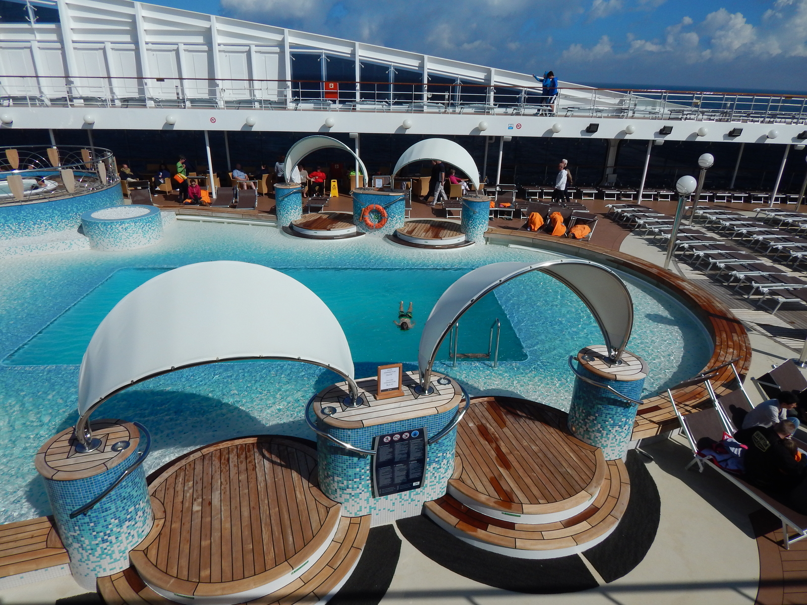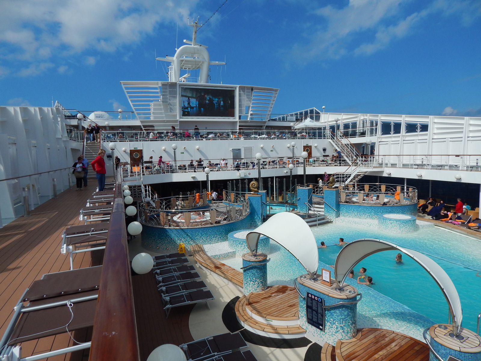 Die Lage unseres Balkonzimmers war schon einmal klasse, Deck 9 im Vorderschiff. Super freier Ausblick und null Motorengeräusche. Fast so still wie in der Natur . Vollverpflegung an Bord und Unterhaltung (sofern man denn will) bis zum Abwinken. Von täglich wechselnden Aufführungen im Theater, Kasino (für diejenigen die zu viel Geld haben), Bars ohne Ende bis zum Bingo für die älteren Herrschaften und Essen/Trinken rund um die Uhr.