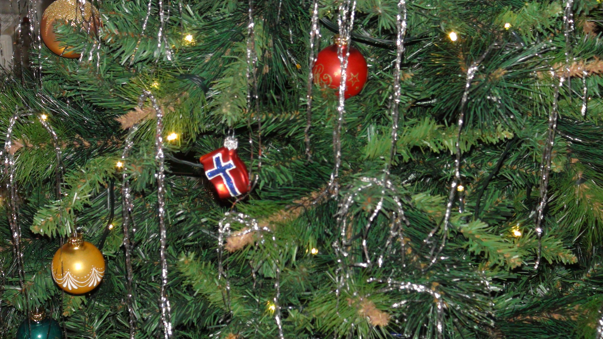 Der Anhänger mit der Norwegenfahne hat seinen Weg schon an den Weihnachtsbaum gefunden.