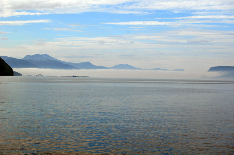 Und nach nem Tankstop bei Statoil/Cirkel (wer kennt das Klo dort???), dem obligatorischem Einkauf bei Rema1000 und einer gelungen "Attacke" auf ner Minibank ging es weiter in Richtung Åfårnes zur Fähre. Eingelegte Stops zwecks Fischversorgung brachten nichts außer die Sicht auf Nebelbänke: