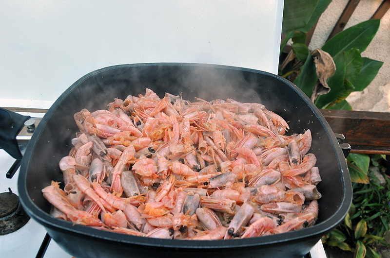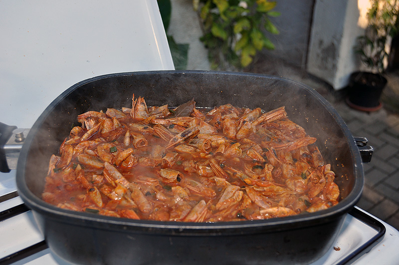 Nun für die, die geräucherte Makrele nicht soooooo legger finden, gab's 'nen Süppchen: Erstmal Rekerschalen in reichlich Olivenöl angebraten: