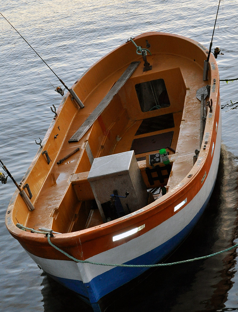 brachte uns überall sicher hin. Natürlich muss man solch ein Boot mögen. Mit so um die 5 Meilen Marschfahrt eben kein Rennboot. Dafür aber mit jeder Menge Platz, so dass auch das Filetieren an Bord kein Problem darstellte. Auch können sich alle drei Insassen (bei uns ca. 350 kg *eek*) zu einer Seite über die Bordwand lehnen, ohne die Stabilität des Bootes irgendwie zu beeinflussen:cool:! Büschen gewöhnungsbedürftig war die offen liegende Welle mit den Flanschen. Da sollte man bein Fahren nicht unbedingt zu dicht ran kommen! Kurz gesagt: ein solides, sicheres aber langsames Angelboot.