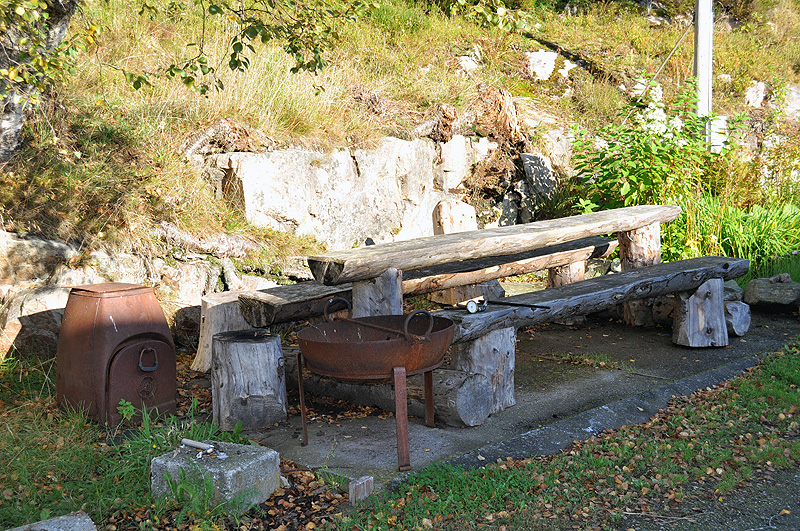 eine Sitzgruppe mit Feuerschale im Freien