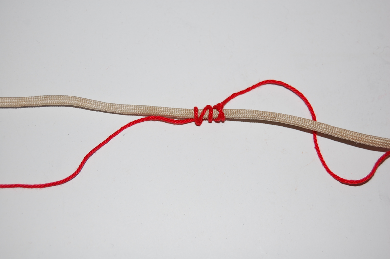 Auf dem dritten Foto, jetzt an beiden Wolfadenenden (rot) zuziehen.