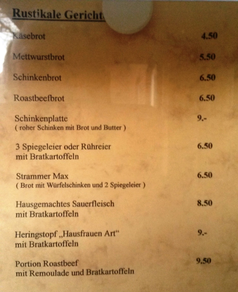 Für das Essen haben wir die Speisekarte. Hier kann jeder bestellen was er möchte. Die Küche ist so leistungsfähig, dass keine Menüs vorbestellt werden müssen.