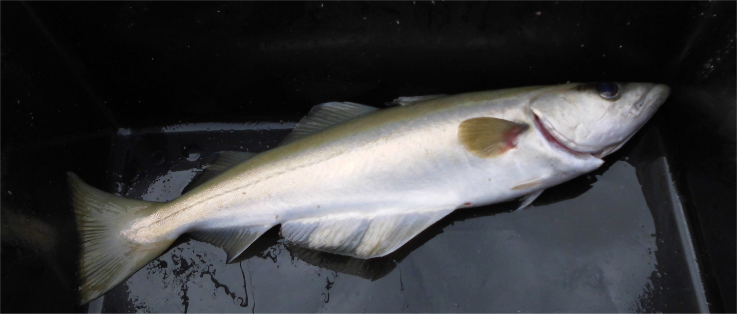 Als dann der Wind um einiges wieder zunahm, stellten wir um auf Naturköder. Hierzu ließen wir uns sehr weit driften. In Tiefen von ca. 20 bis 60 m erfolgten dann die Bisse. Zaghaft und vorsichtig. Was sich aber an die Oberfläche traute, waren halbstarke Lengs bis etwa 80 cm.