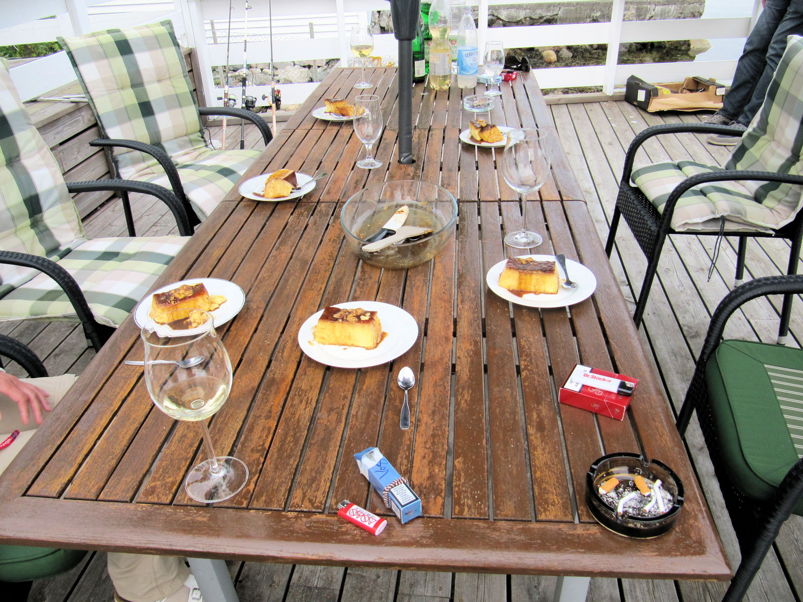 Der zweite Teil dieses Tages bestand aus Essen: Heidi hatte zwei Karamellpudding gemacht, einen haben wir unmittelbar nach Ankunft mit einem Kaffee genossen. "Nebenbei" setze Heidi dann Får i Kol