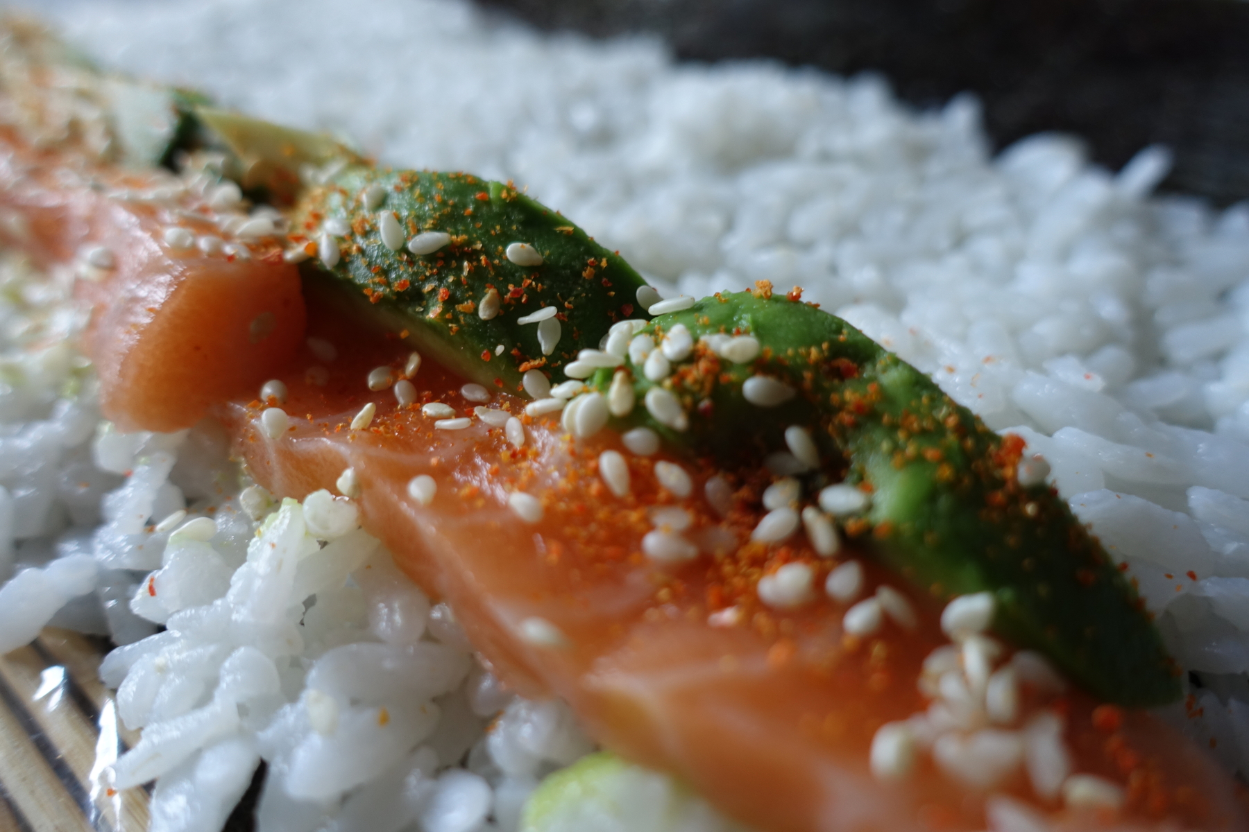 z.B. Lachs, Avocado, Chili mit oder ohne Sesam...
