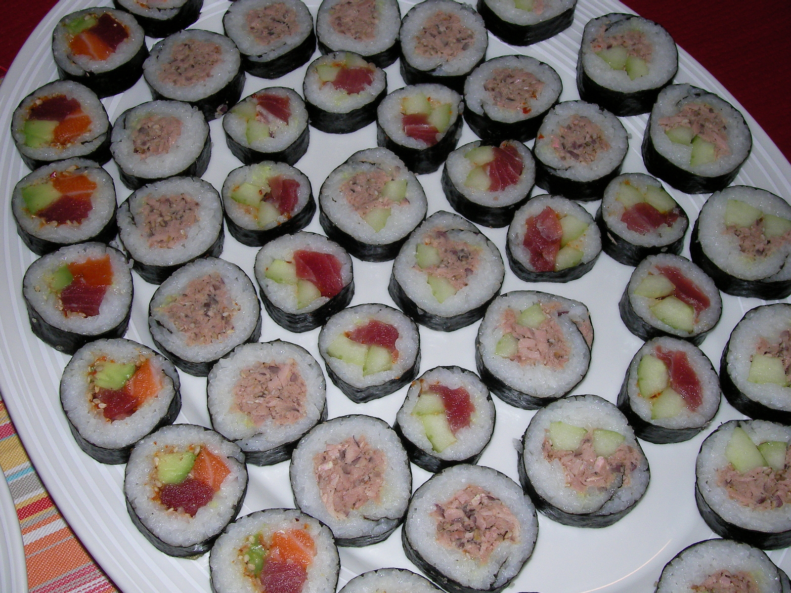 z.B. Lachs, Avocado, Chili mit oder ohne Sesam...