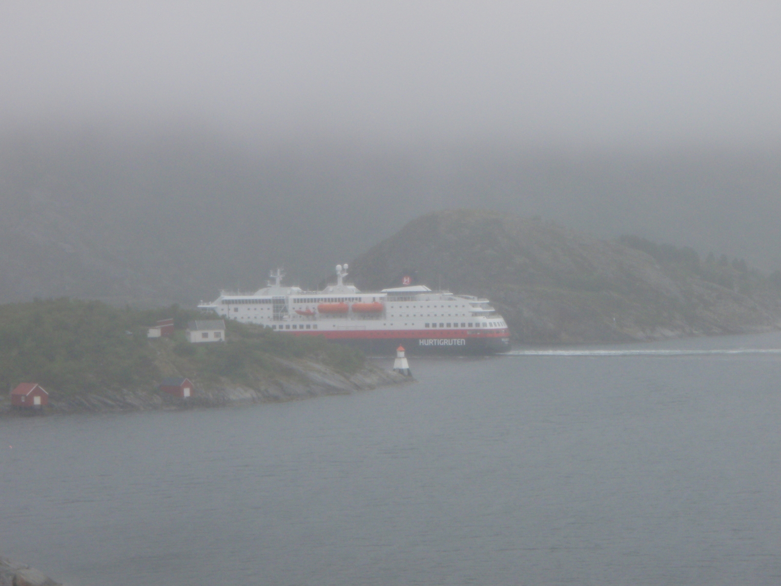 in live ist es schon ein besonderes Erlebnis. 2012 haben wir die Nordlys beobachtet. Selbst von den Bildern her habe ich den Eindruck, dass sich die deutlich mehr nach außen geneigt hat. Wenn das Schiff dann in den Stokken hinein verschwindet sieht das fast unwirklich aus.