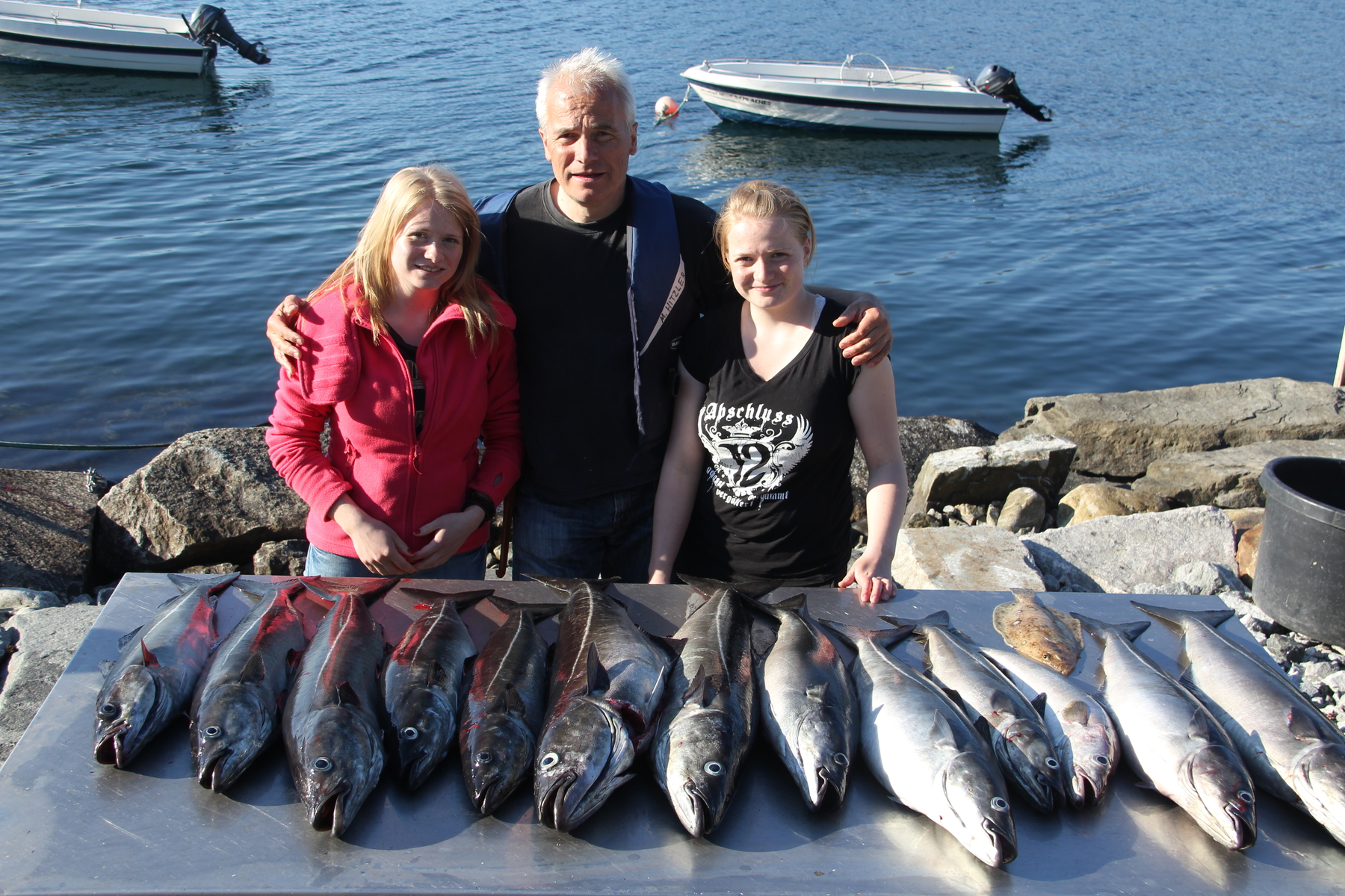 Der Vorerst sanfte Zugang zum Wasser und den Angelaktivitäten nahm an einem Lachsfluss in Norwegens Westen seinen Anfang. Ausgerüstet mit großen Brillen versuchten die Zwei ruhig stehende Lachse im Fluss zu erblicken. Zuerst natürlich nicht von großem Erfolg gekrönt, versuchten sie es in den Ferien wieder und wieder. Zu Boote mit den Eltern auf dem Fjord unterwegs ließen sie die Angeln nieder und fingen von Krebsen zu Barschen, Leng und Tintenfischen eine Vielzahl derer, was im Fjord zu fischen ist. Nicht nur die Ausbeute wurde interessiert in Augenschein genommen, sie staunten auch darüber, welch große Auswahl die Gewässer zu bieten haben.