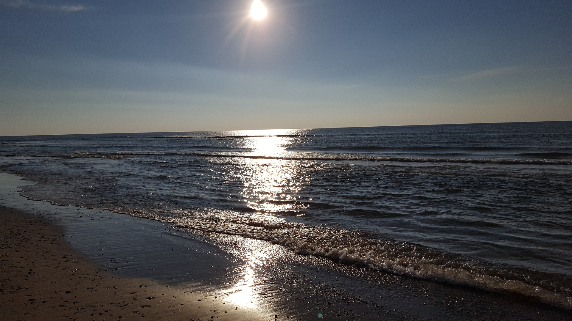 Die Abendsonne schien vom fast wolkenlosen Himmel, es war traumhaft!! Auch Udo hielt es nicht aus und musste wenigstens mal mit den Füßen ins verlockende Wasser.