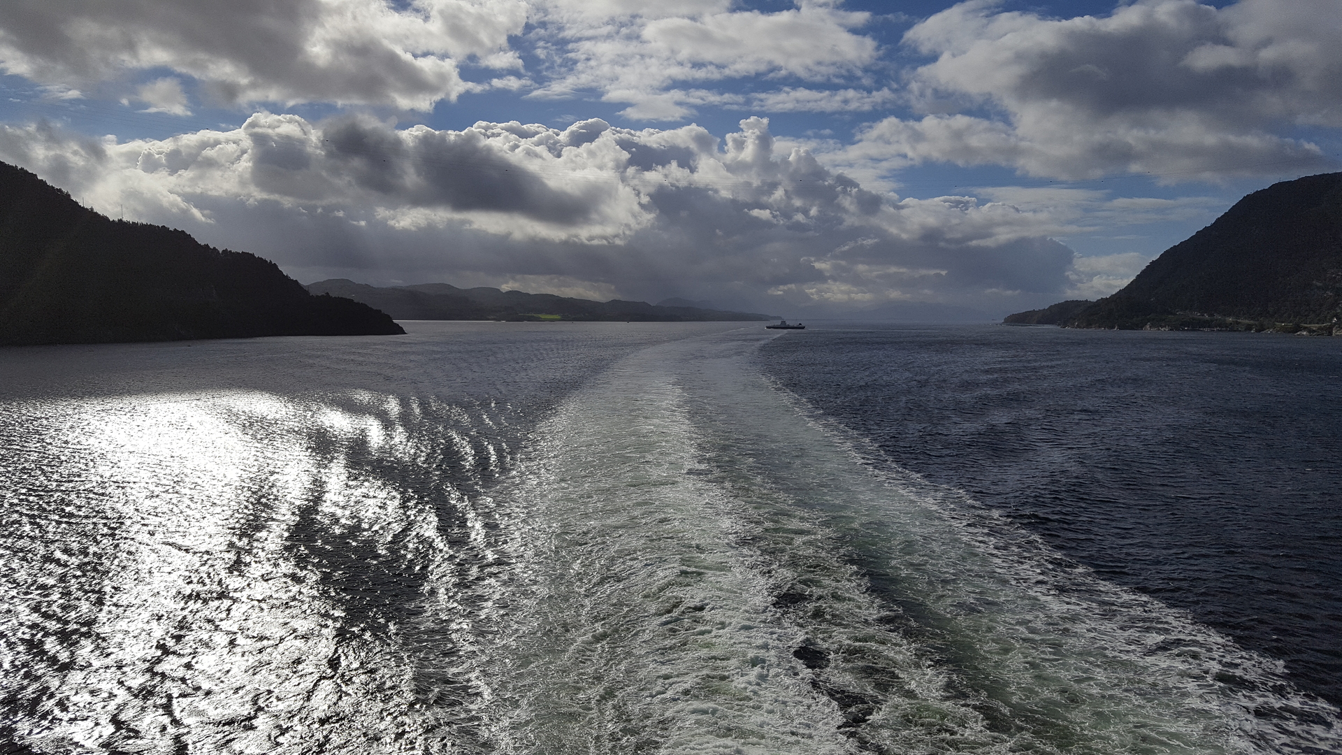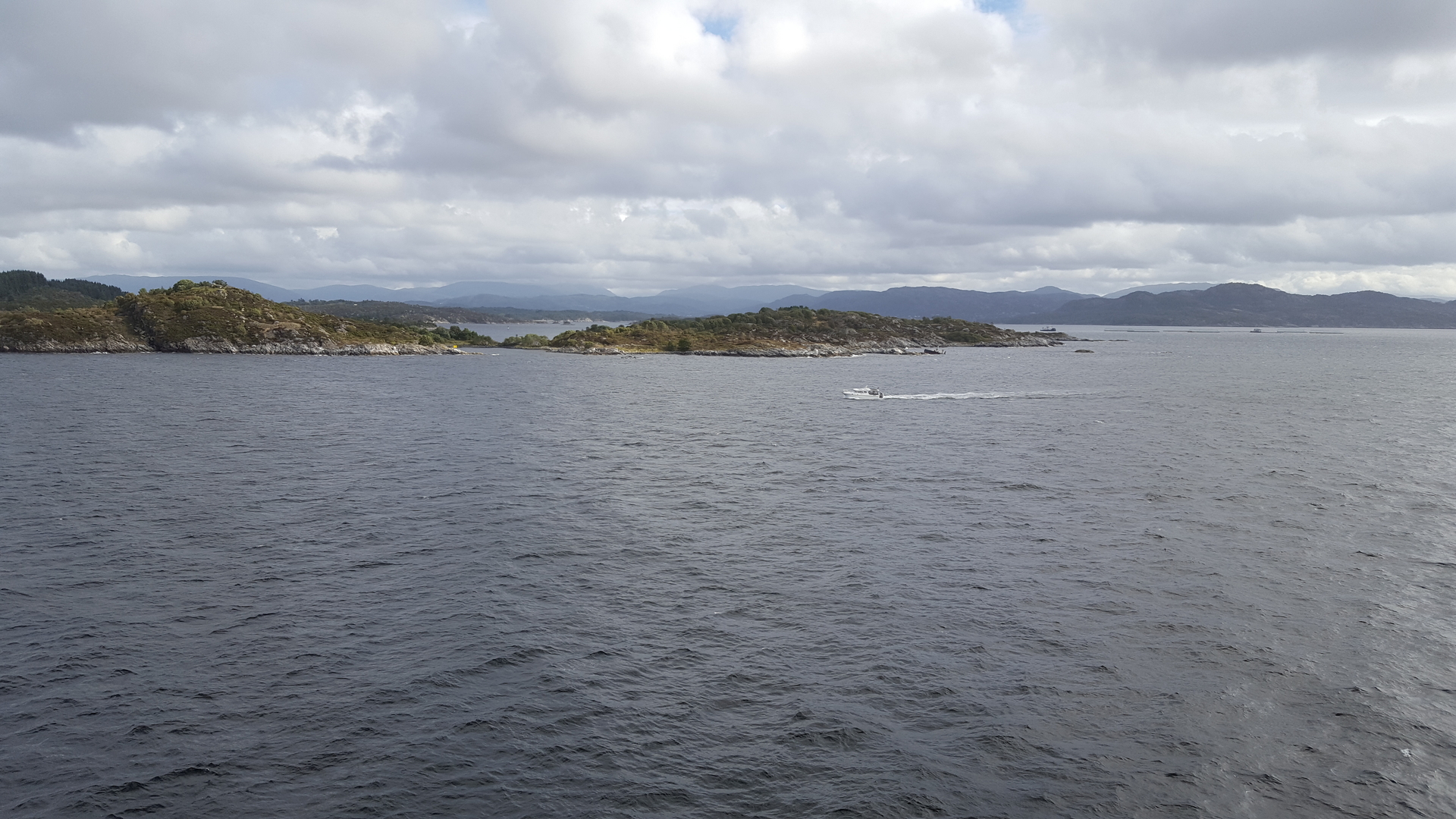 Bald entdeckten wir, wie die Fjordline heranschipperte, so dass wir uns dann auch so langsam auf zum Terminal machten, wo über uns ein paar Mal ein Militärflugzeug in niedriger Höhe hinweg flog.