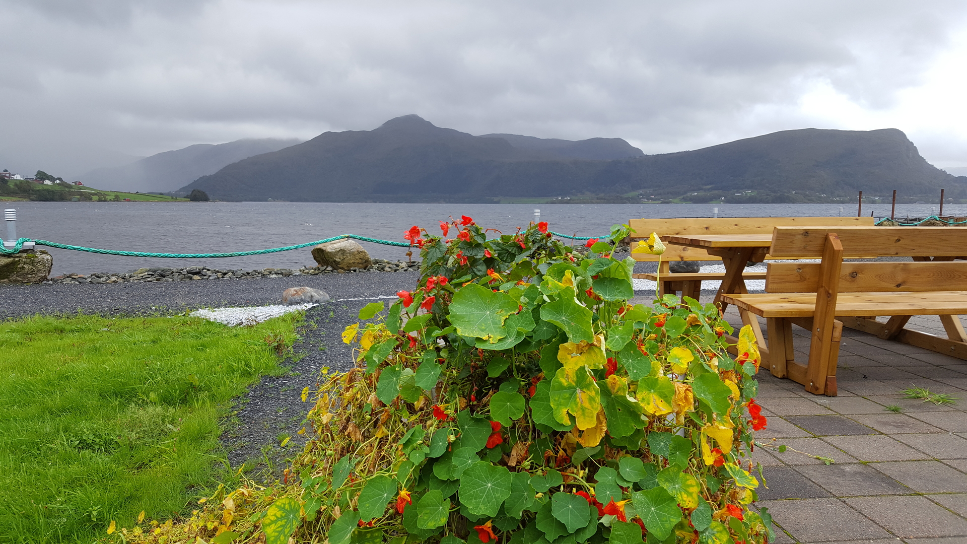 Auch im Nordfjord war es mächtig stürmisch. Man sah überall kleine Wasserfälle und Rinnsale die Berge runterlaufen, wo vorher gar nichts war. Die Bachläufe waren voll mit Wasser, teils war es richtig braune Brühe.