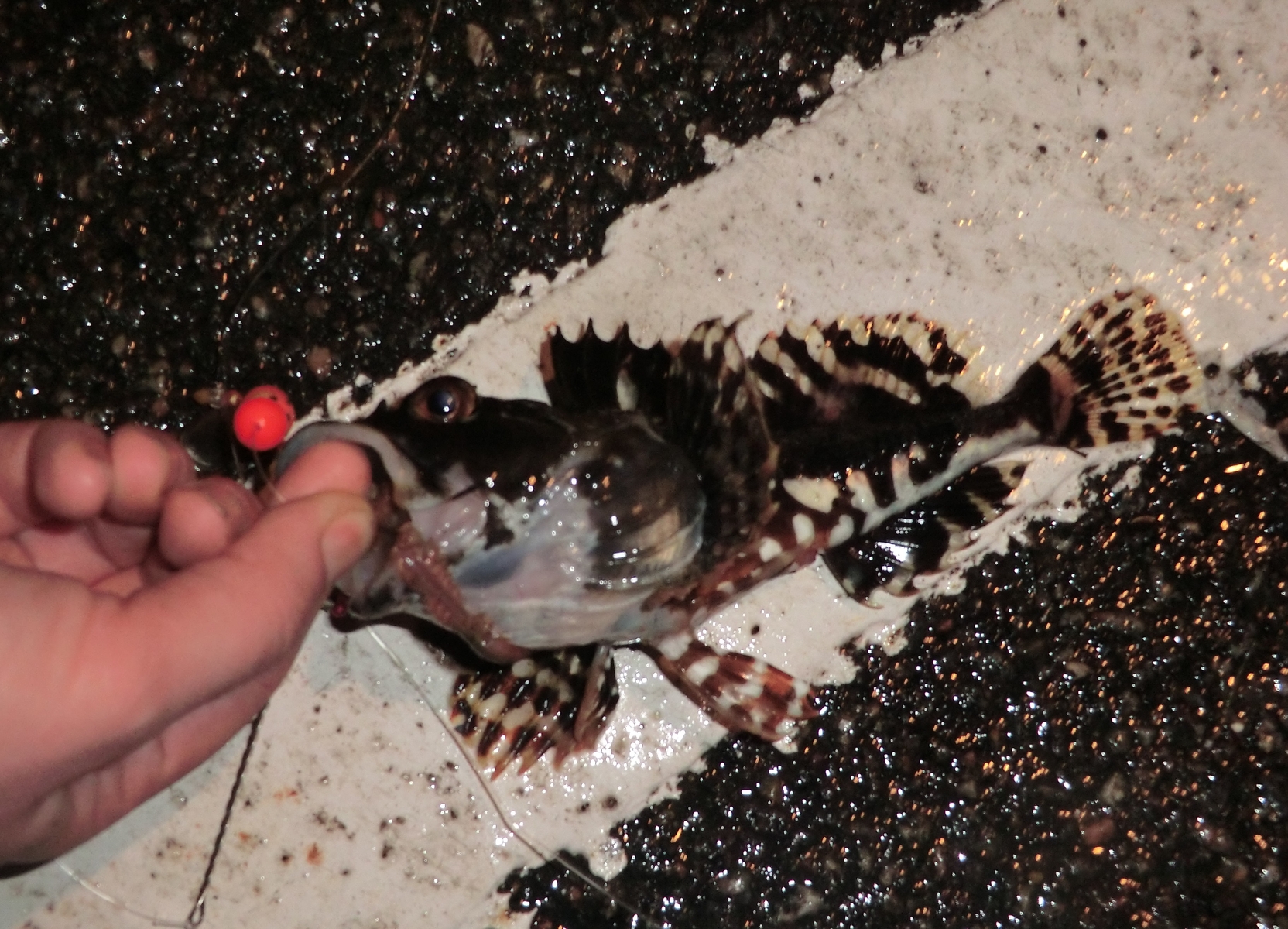Hatten wir sehr häufig beim Molenangeln,meist kleine Exemplare von 10-15cm,selten größer.Kann aber > 50cm lang werden in nördlichen Gewässer.