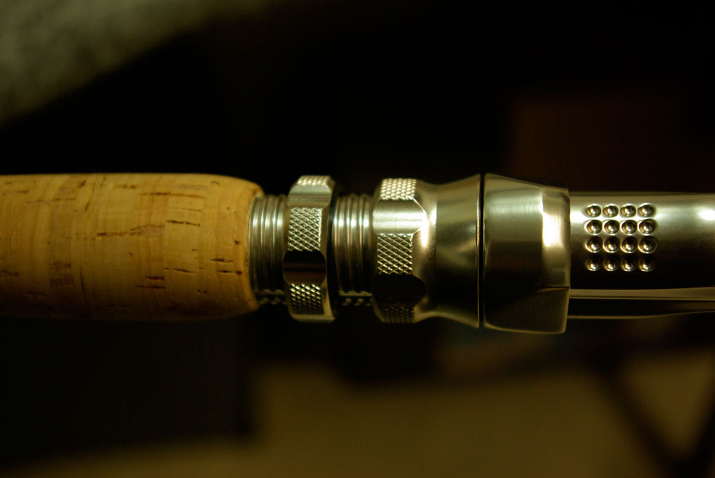 Mit metalscheibe ist die rute am rollenfuß balanciert, mit die korkscheiben ganz wenig kopflästig. Je man gerne möchte.