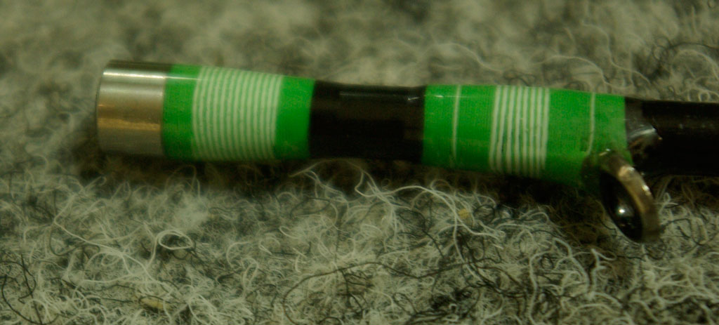 Und sehe da, eine wunderschöne rute in Grün, die im dunkel auch noch ein wenig leuchtet. Ich habe auch noch leuchtfarbe verwendet, aber man sieht es noch kaum bei die vielen schichten lack die im griff verarbeitet sind. Am Tigerwrap sind es schon mal 8 lackschichten...
