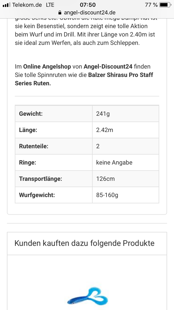 Die Mehrzahl unserer Spinnruten sind auch 270cm.