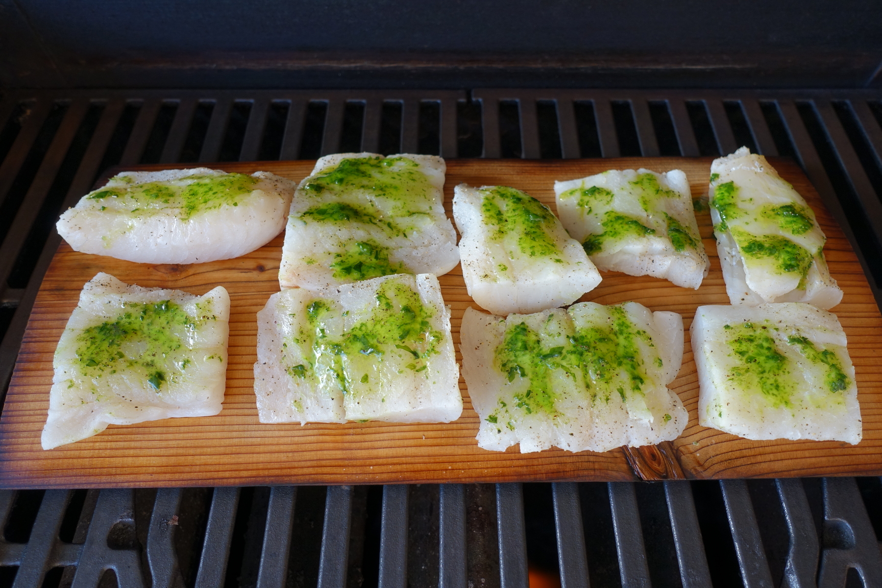 ... und vorher noch schnell noch ein kleines wenig Pollak mit Bärlauchbutter von der Planke - ach, das Leben kann so schön sein...