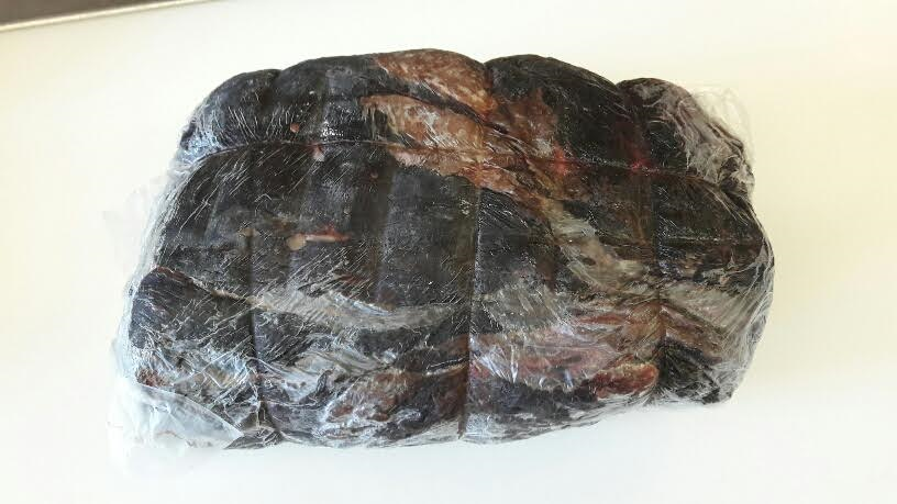 Zur Verwendung kam das Innenstück der Hohen Rippe. Dieses habe ich in Collagenfolie gewickelt und 4 Wochen