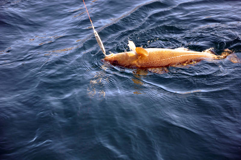Da auch die anderen Wilderer, ähhhh Angler hier nicht mal Köderfische bekamen, ist man ja hilfsbereit und kleine Köhler wird es ja wohl geben. Aber auch die waren wech! Nach fast einer Stunde ohne Fisch dann doch noch ein paar Köhler und sogar ein Dorsch biss. Die Welt war wieder in Ordnung. Aber dann kam's gaaanz übel. Mein Telefon klingelte zwei Mal. Das verabredete Zeichen, dass Mareile Frühstück möchte und ich mich gefälligst in die Küche begeben soll. So ein Mist! Aber versprochen ist versprochen! Und so blieb es bei dieser Ausbeute.