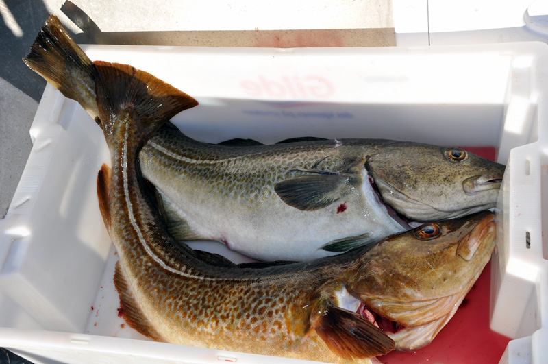 Da auch die anderen Wilderer, ähhhh Angler hier nicht mal Köderfische bekamen, ist man ja hilfsbereit und kleine Köhler wird es ja wohl geben. Aber auch die waren wech! Nach fast einer Stunde ohne Fisch dann doch noch ein paar Köhler und sogar ein Dorsch biss. Die Welt war wieder in Ordnung. Aber dann kam's gaaanz übel. Mein Telefon klingelte zwei Mal. Das verabredete Zeichen, dass Mareile Frühstück möchte und ich mich gefälligst in die Küche begeben soll. So ein Mist! Aber versprochen ist versprochen! Und so blieb es bei dieser Ausbeute.