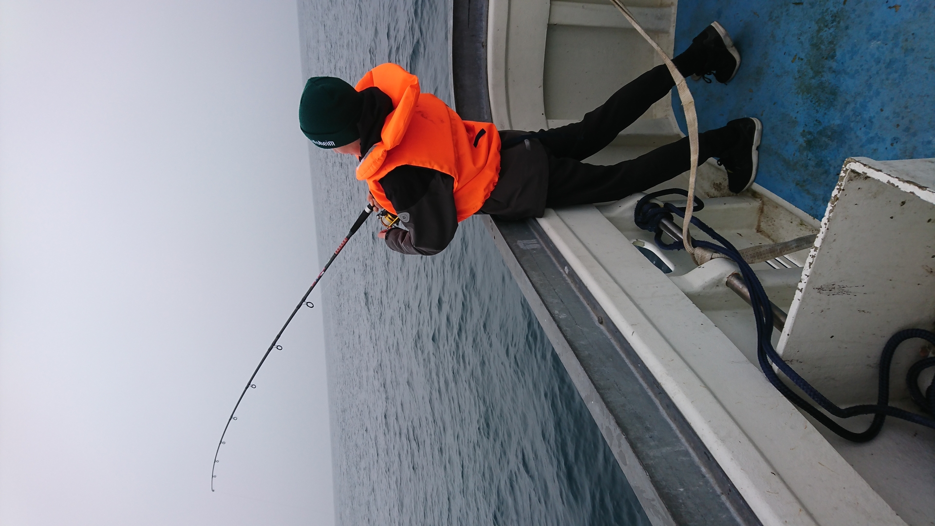 Frisch gestärkt machen wir uns jetzt zu viert auf den Weg zu den Fischgründen. Da mein Kleiner nicht so weit rausfahren möchte suchen wir die Fische in der Nähe der 80-100m Kante in der Nähe der Hafenausfahrt. Mein Bruder fängt seinen ersten Fisch. Einen schönen Wittling. Glück muss man haben. Es folgen noch ein paar kleinere Köhler. Im Hafen angekommen treffen wir Henning. Spontan verabreden wir uns zu einer kleinen Ausfahrt. Mein großer und ich fahren dann mit der Blubird 2 an die Pollackstelle vor dem Plateau. Die Köhler sind da und so füllt sich die Kiste relativ schnell mit Köhlern, zwei kleinen Pollacks und einem kleinen Leng den wir leider nicht mehr zurücksetzen konnten. Erschöpft kommen wir abends im Hafen an.