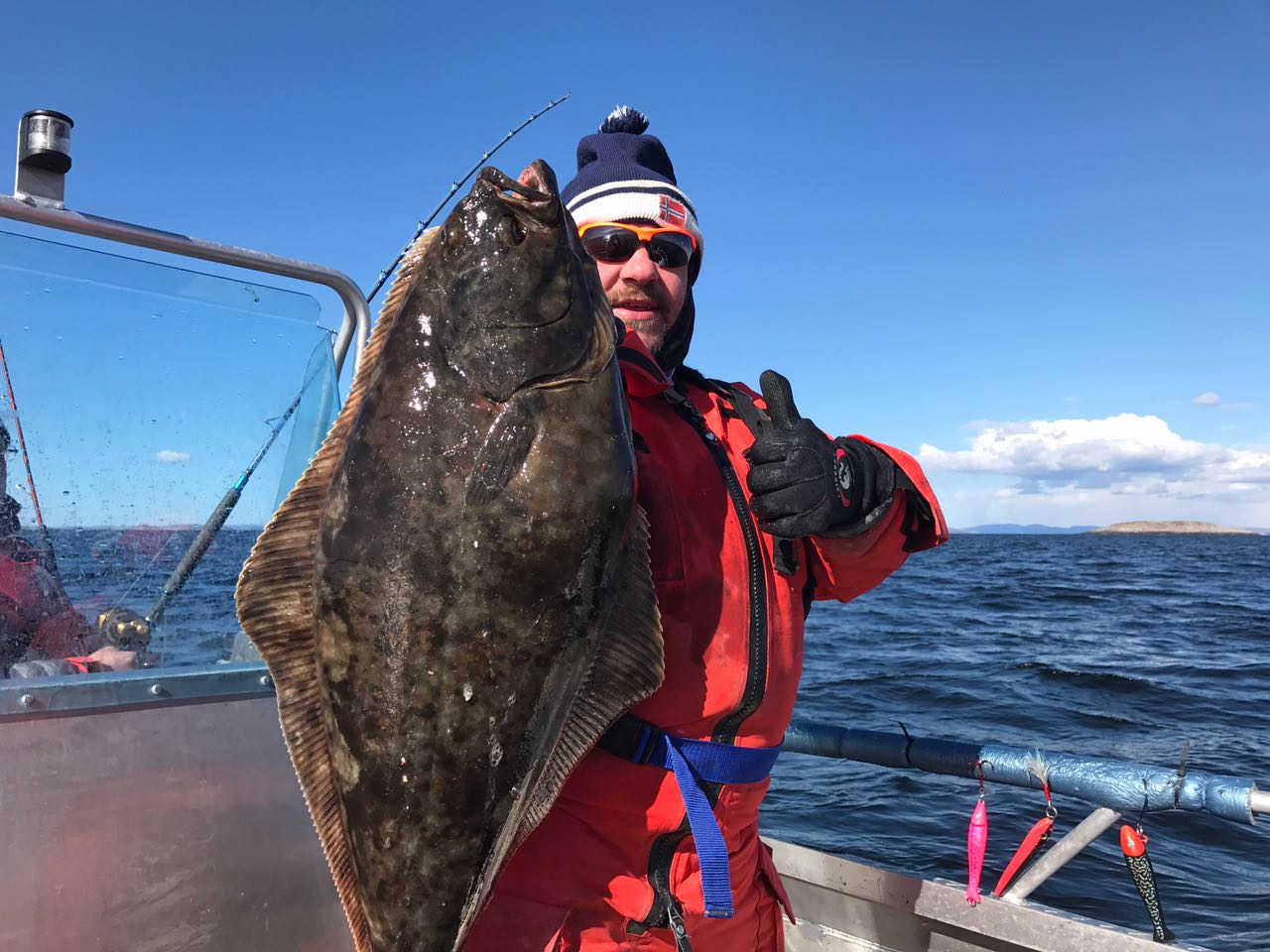 Dorsche gefangen für Truhe, danach Köderfische fangen und auf die Kveite. Eins ist allerdings anders gewesen, Offshore also 10Km vor dem Grunnen konnte nur Stephan fahren, mit seinen Guidingboot, 8ms war für das 20Fuss Aluboot zu viel, wir musten rechts unter land, auf Kveite fischen.