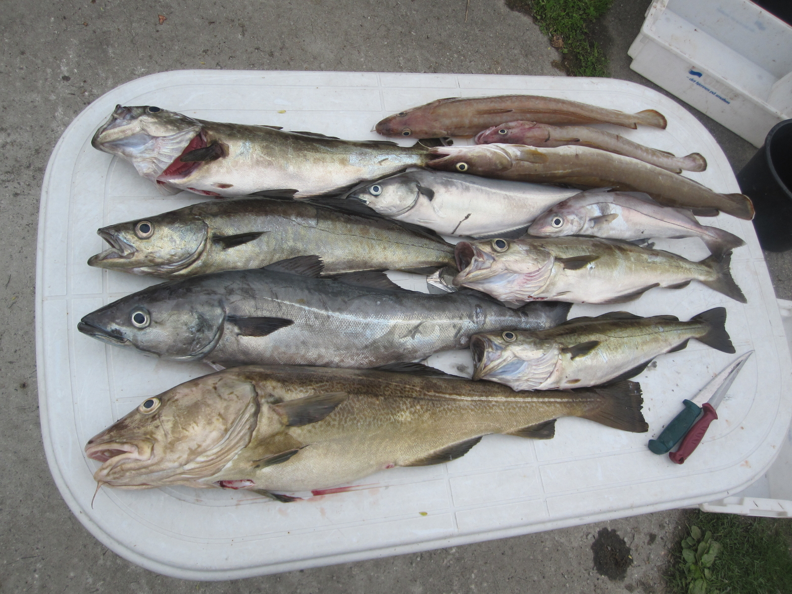 2: Im gesamten Bereich Viel Küchenleng in Tiefen von 30-60 Metern. Auch hier auf den Untiefen große Pollacks unter den kleinen Köhlern und Makrelen.