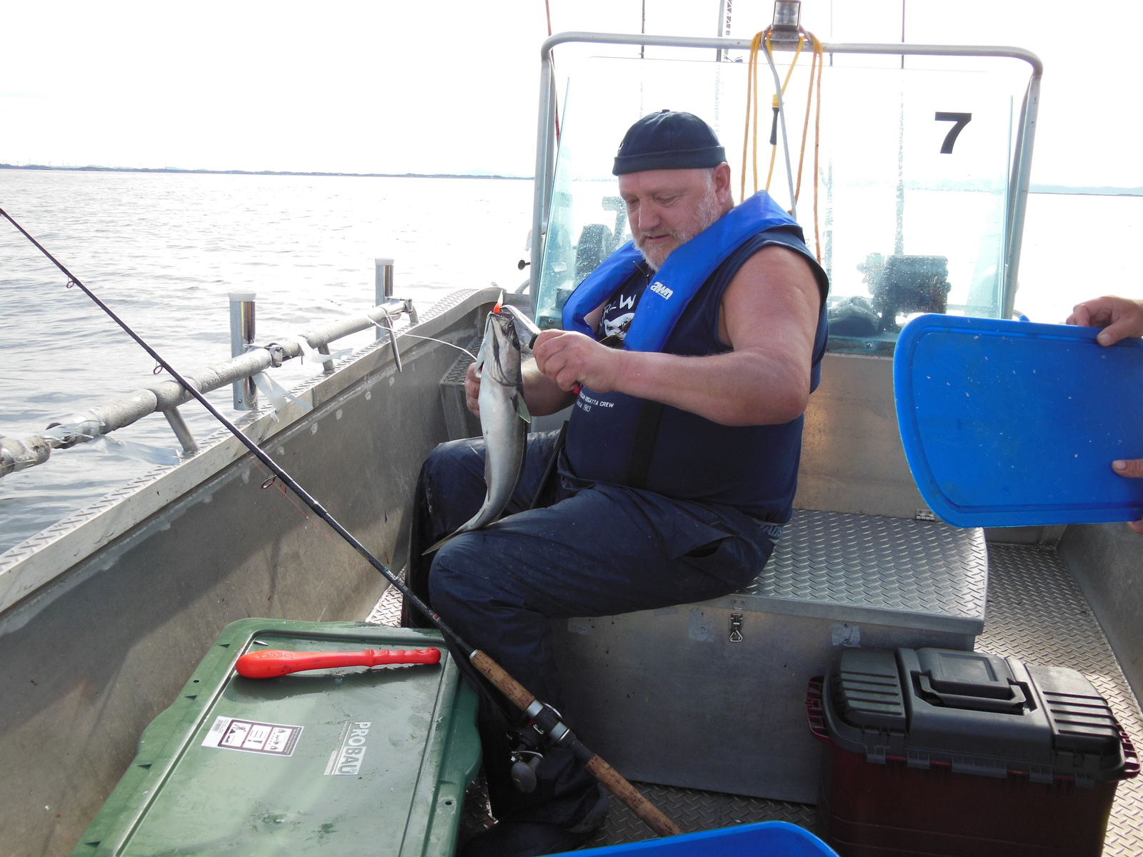 Der erste Tag, an dem ich mit Olli rausgefahren bin, war einfach toll. Wetter passte und die Fische, ich hatte den Eindruck daß die sich angestellt hatten, um mit zu kommen.