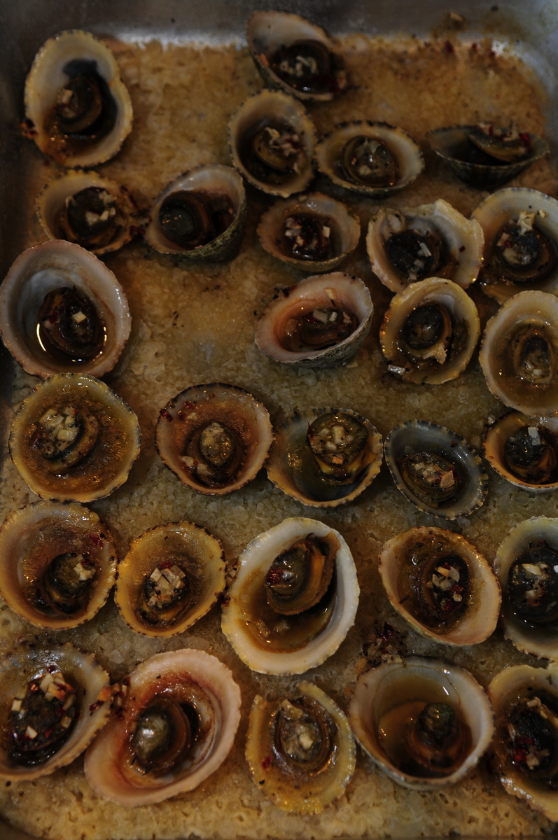 Ich bereite die genauso zu wie Napfschnecken (Fotos von Austern habe ich nicht):