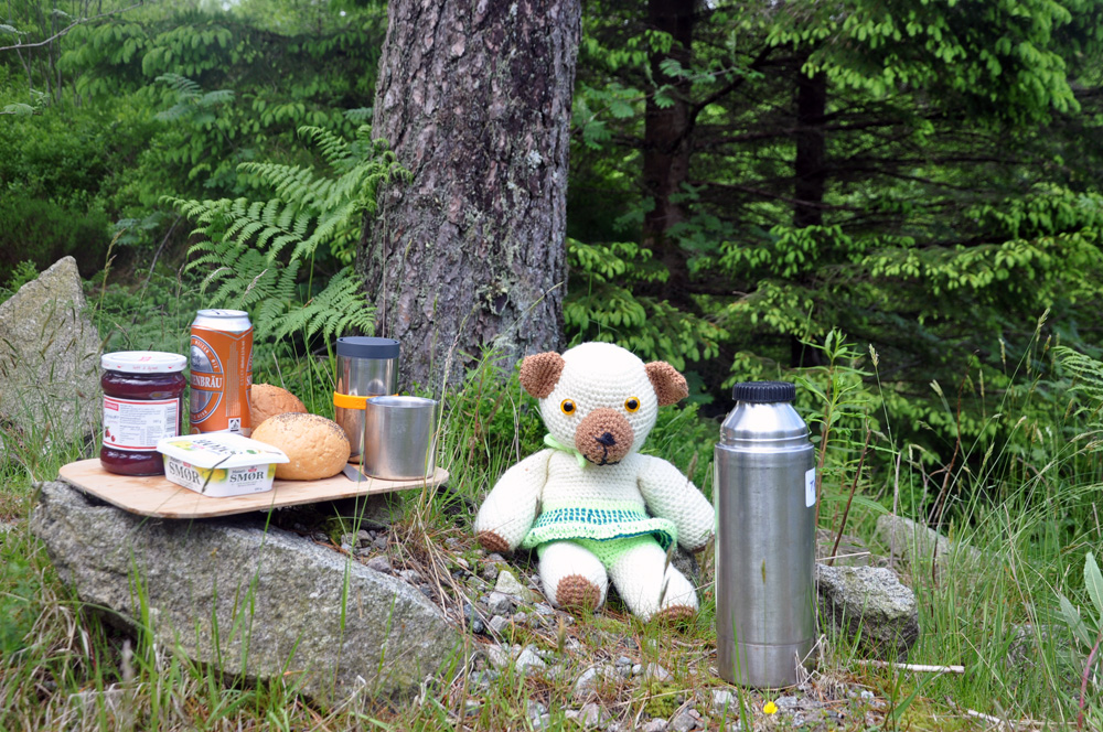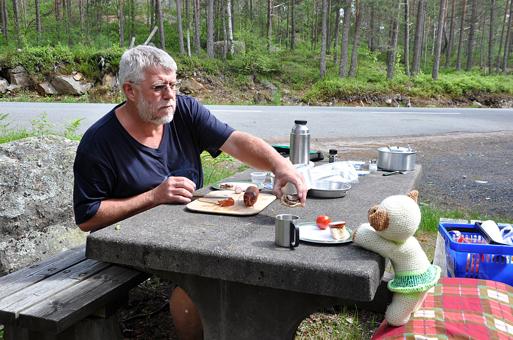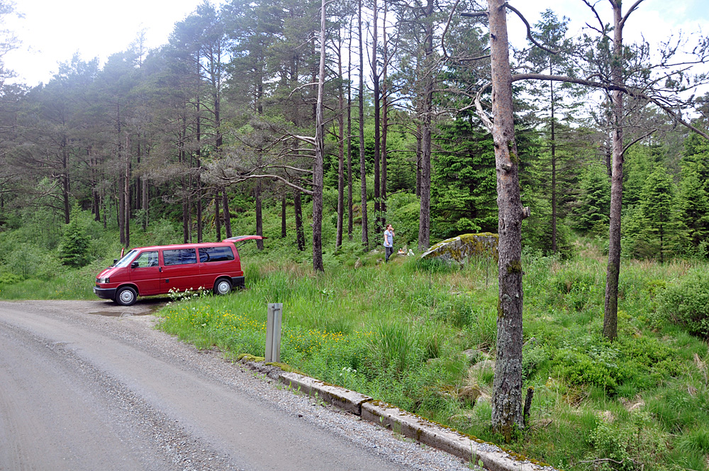 Als nächstes Ziel hatte Mareile ne Wanderung zu einem Aussichtspunkt beim Vardetjønn rausgesucht. Der Weg oder besser Pfad wurde aber auf der Beschreibung auf dem Parkplatz als mittelschwer angepriesen und so verzichteten wir auf die versprochene grandiose Aussicht. Mit den norwegischen Wanderwegbeschreibungen haben die Alten schon ihre Erfahrungen gemacht!