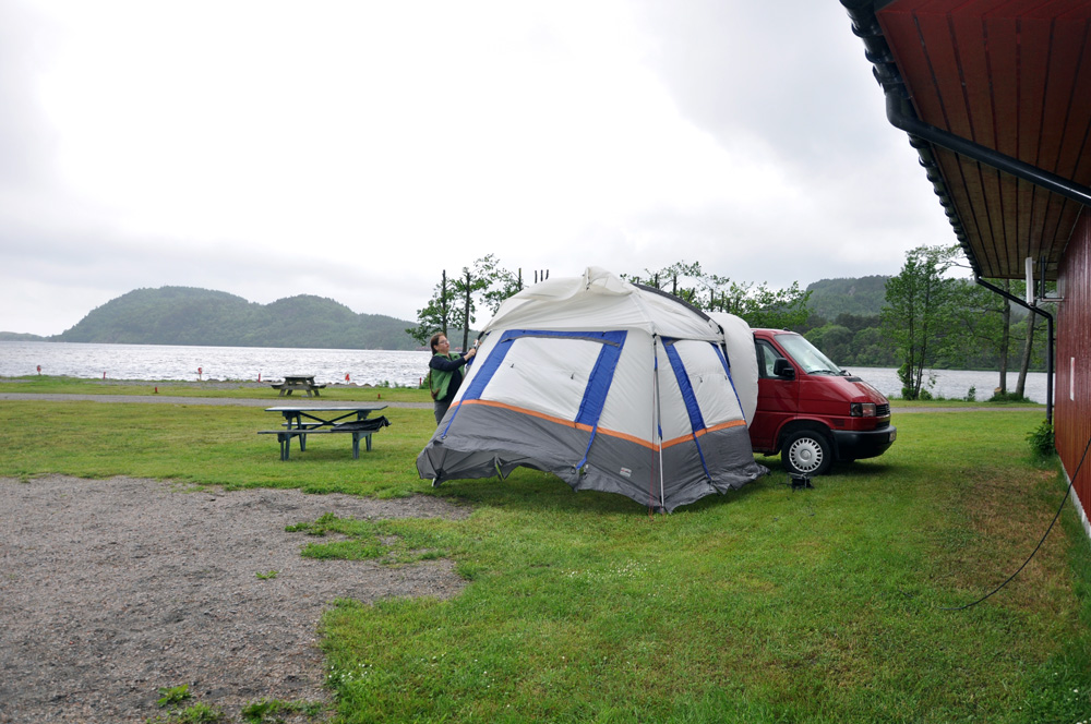 Nun gings weiter, Campingplatz suchen und vor allem finden. Das war recht einfach und so landeten wir beim Årosferiesenter.Die Anmeldung ging wieder skandinavisch unkompliziert und bald stand unser Zelt.