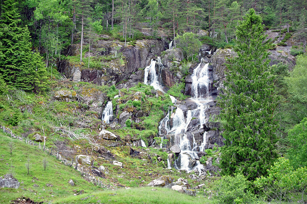 In einer Regenpause wurde bei heftigem Wind das Zelt abgebaut, der Wasservorrat ergänzt und los ging es zu neuen Abenteuern.Wir fuhren in Richtung Norden auf der 460, das grobe Ziel war Evje im Seestedal.