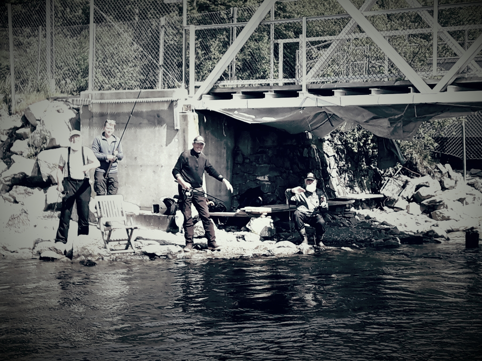 Gegen 20 Uhr verteilten wir uns auf die beiden Boote und machten uns auf zu Eisenbahnbrücke wo immer unsere Goldschürfer standen.