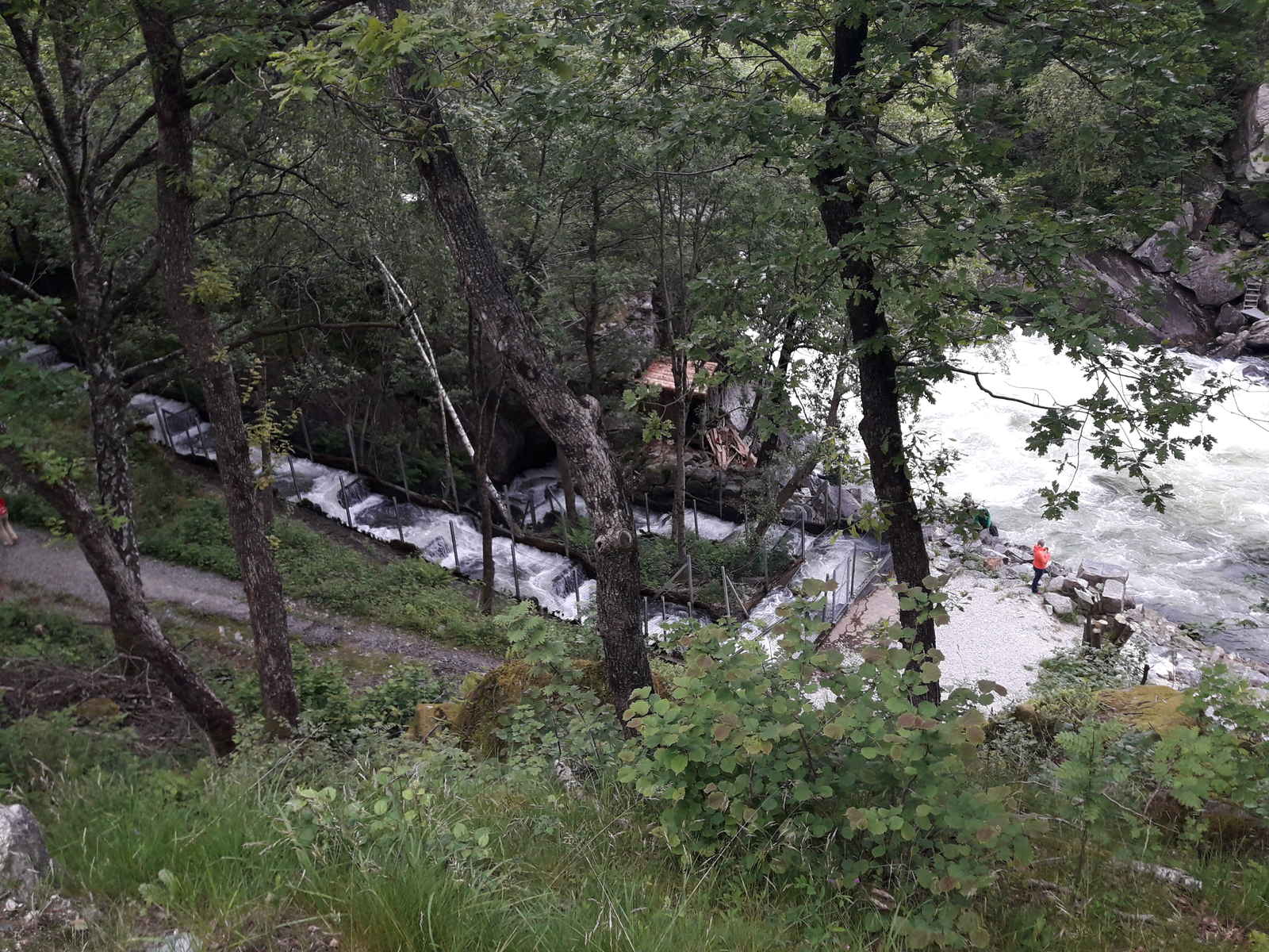 Im Bereich der Durchfahrt ist ein großer Brückenpfeiler hinter dem die Lachse kurz stehen, bevor sie weiter ziehen. Einer der Jung steht auf der Brücke und meldet wenn wieder welche ankommen und dann geht das werfen los.