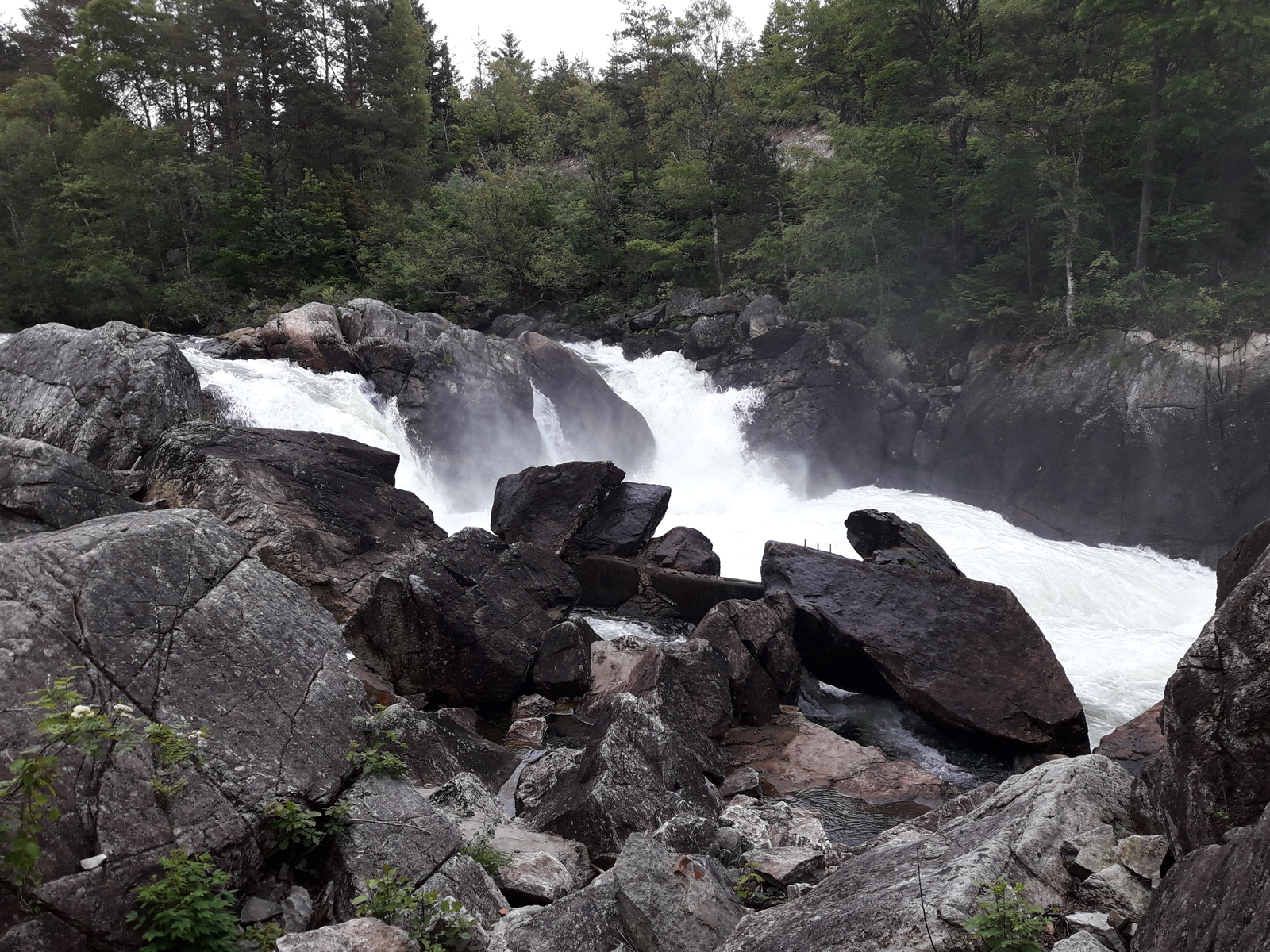 Da der Wind jedoch nicht Nachließ beschlossen wir zum Nachmittag mal ein Alternativprogramm zum Angeln zu machen. Der norwegische Lachsfluss Bjerkreim (Teng) war das Ziel. Also mit dem kleinen Boot schnell rüber zum Hafen und dann zu Fuß ca. 20 min zum Wasserfall. Schöne kleine Trampelpfade führen von der Straße immer wieder runter zum Fluss wo auch urige Wetterhäuschen für die Lachsfischer gebaut wurden. Immer wieder konnte man die Lachse sehen, wie sie eine Stufe höher in den Fluss sprangen oder Schutz vor der Strömung hinter den Felsen suchten. Somit kamen wir halt doch noch mal an den Fisch wenn auch nicht mit der Angel.