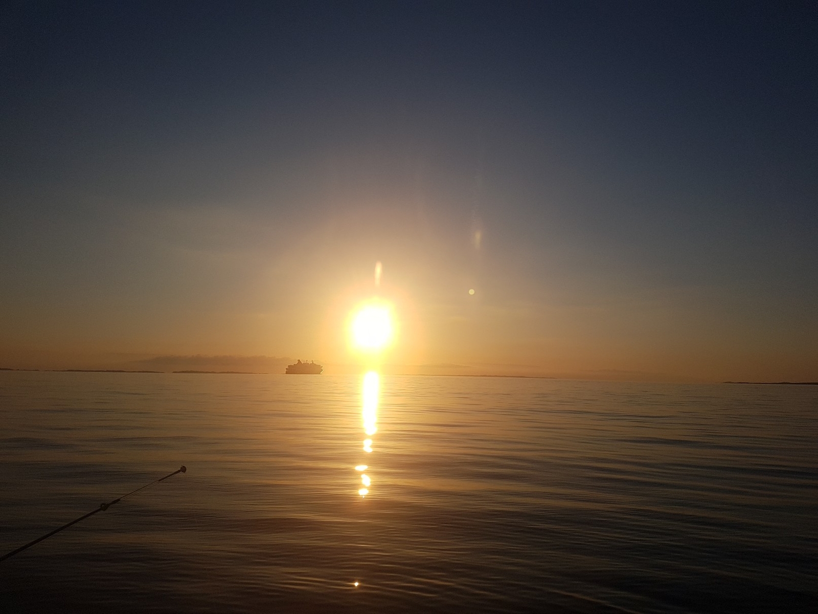 Am Abend nochmal Sonnenuntergang und der Hurtigrute entgegen.