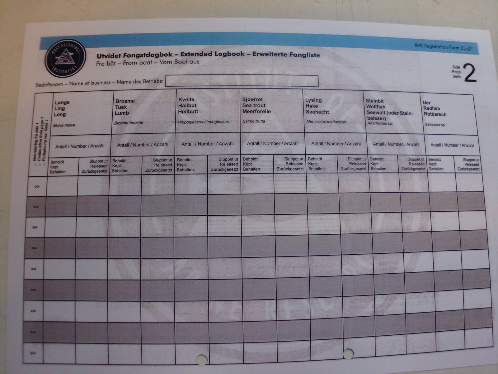 So lag bei uns eine erweiterte Fangliste vom IMR aus in die, abweichend von den bisher 5 Fischarten, weitere einzutragen sind und diese Fangstatistik wird (durch Vermieter) an das IMR übermittelt.