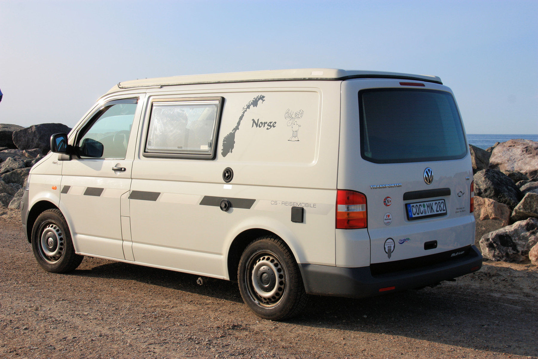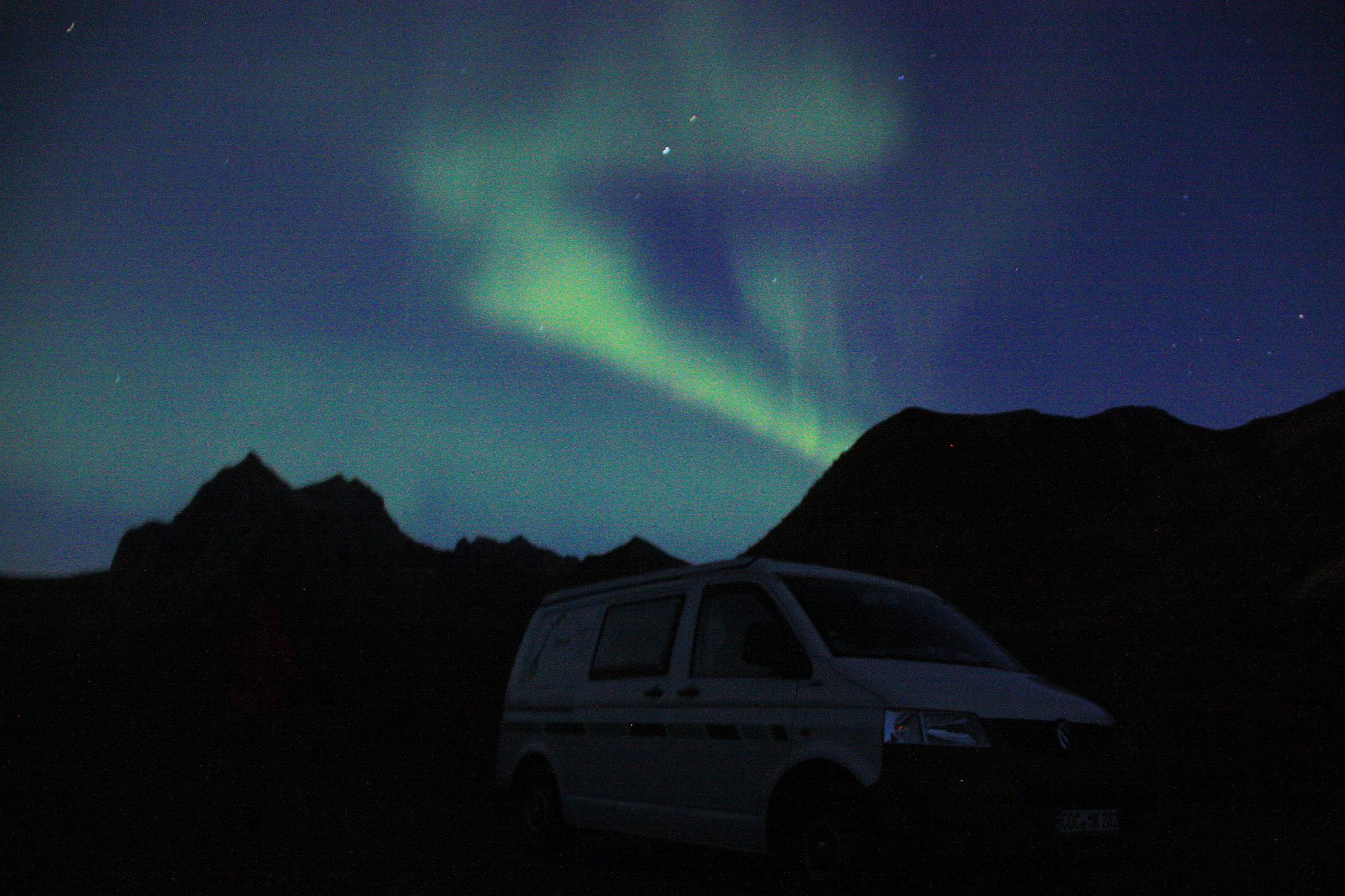 Bulli-Bus hat fast klaglos gehalten. War aber auch vorher in ganz großer Inspektion mit Tausch etlicher Teile und aufziehen ganz neuer (Winter)-räder. Ausgerechnet Neuteile machten dann "Zicken" - ganz ekliges Geräusch beim Durchfahren gewisser Unebenheiten (insbesondere der norwegischen überhöhten Gangfelder und ähnliches dieser Art) klang genau wie total ausgekloppte vordere Stoßdämpfer - die waren aber extra gewechselt. Ansonsten sind wir sehr stolz auf ihn...da waren für den kleinen Motor echte Mordstraßen drin - und dazu zählen wir eher weniger Trollstiegen - er brauchte auf ungefähr der Hälfte der Tour ca. 250 ml Öl (reine Vorsichtsmaßnahme). Einziges wirkliches Problem: bei extrem Regen in einer Nacht und Morgen zeigte das Scheibengummi der Heckscheibe sein Alter.....aber auch da - alles gut.