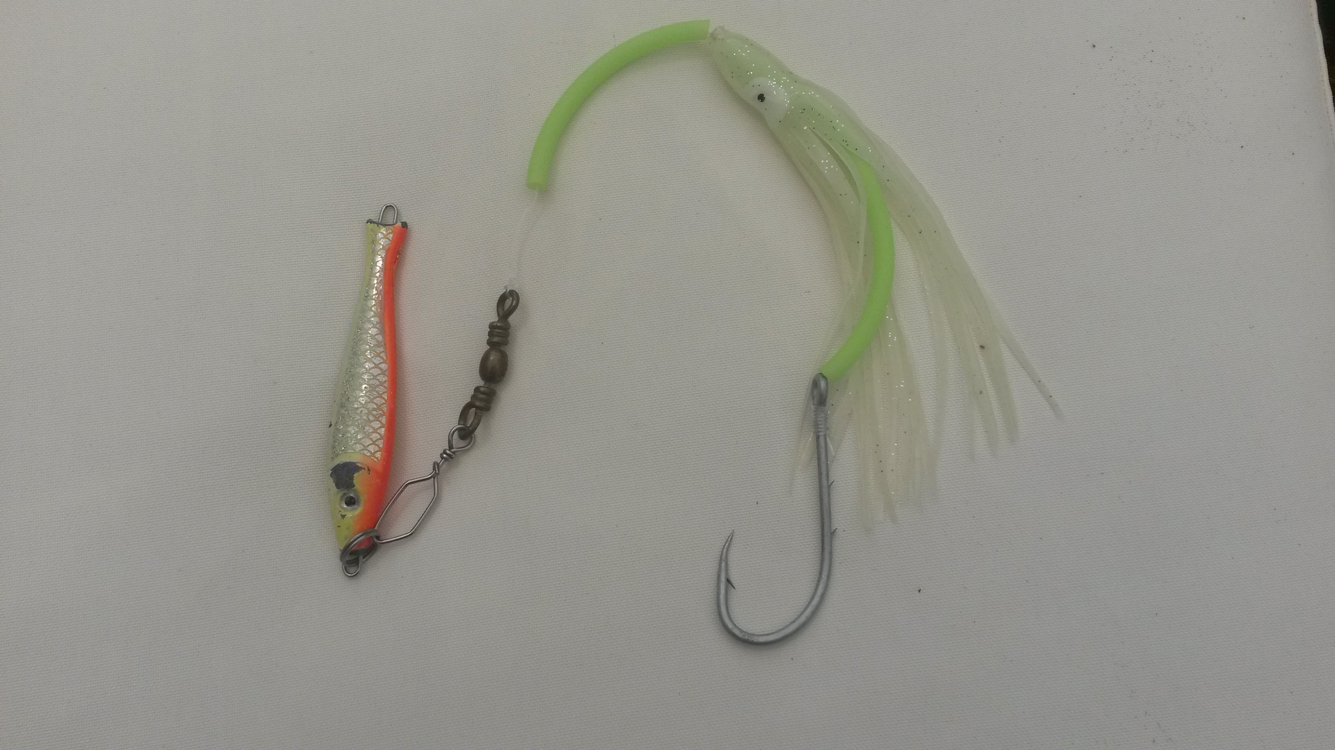 Am dritten Tag war für den Nachmittag Starkwind prognostiziert. Darum sollte es im Linesfjord zuerst auf Leng gehen und anschließend ein Versuch auf Seehecht gestartet werden. Völlig überraschend fangen wir statt Leng Wittlinge schon beim Ablassen. Mit 50 cm ist mein Exemplar schon ordentlich, doch Matze‘s bringt es sogar auf 58 cm. Dann wechseln wir nach Djuptaren und steuern den veröffentlichten GPS-Punkt für Seehecht an. Matze und ich setzen auf ein Fireball-System, das dem aus hooked.no nachempfunden ist. Gerhard dagegen verwendet das System, wie in der aktuellen K&K Nr. 67 gezeigt, ein 20 cm langer Nachläufer am Pilker, mit einem Oktopus bestückt und Leuchtschlauch davor und dahinter.