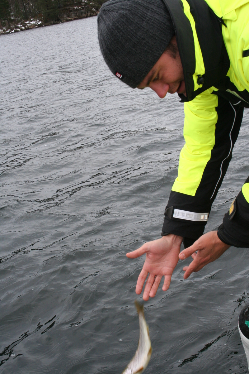 Heiko ( Ballast1) konnte noch einen Dorsch verhaften, jedoch flutschte er durch die Finger ins weite, kalte Nass.