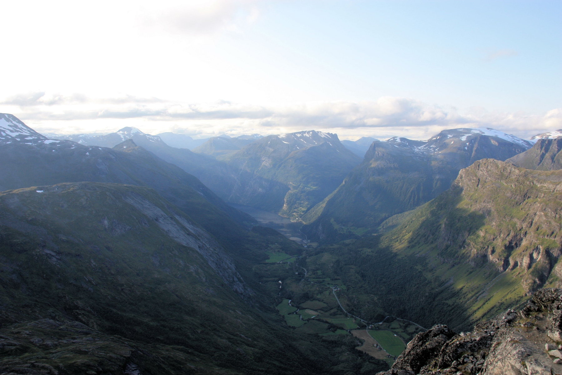 34. "ein paar Meter weiter" sagt meine Frau: "Da neben uns kommt von oben eine Straße" Sage ich: " Ja - sicher, für Schafe und Ziegen oder was?" Momente später durchzuckt es mein träges Gehirn !!! DALSNIBBA !!! , 3,8 km Motorqual und dabei rund 500 Höhenmeter zum höchsten europäischen Fjordblick von einer Straße - 1500 m über Null - und über dem Geiranger.