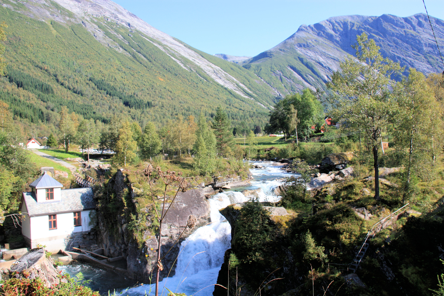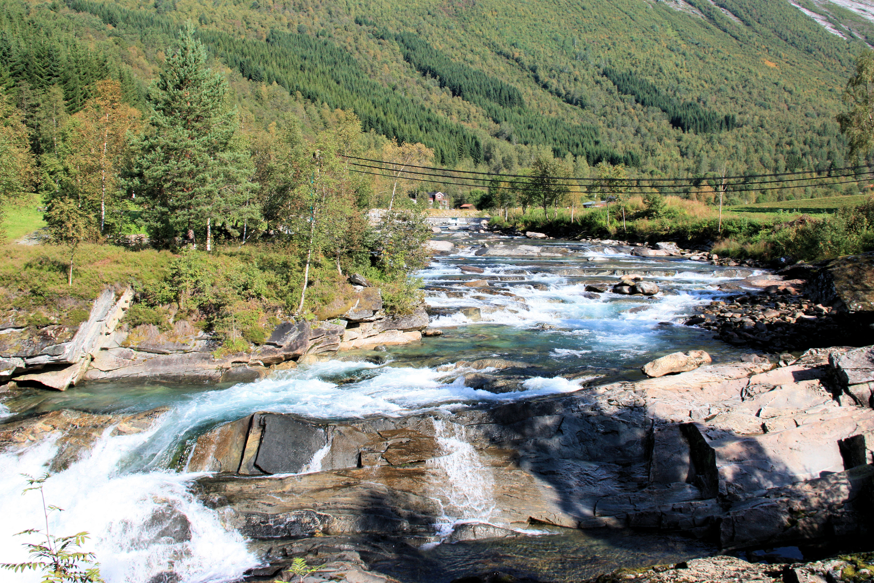 48. nachdem er genau an unserem Haltepunkt unter der Straße "durchmachte" sah er so aus....kristallklar. Kleiner Nachtrag, wir kamen ungefähr 100m weit, dann wurden wir wieder aufgehalten - Erdbeeren direkt vom Hof - Kirschen vom Sognefjord hatte es schon in der Umgebung Balestrand auf der RV 13 gegeben....das Land ernährte uns ganz nett